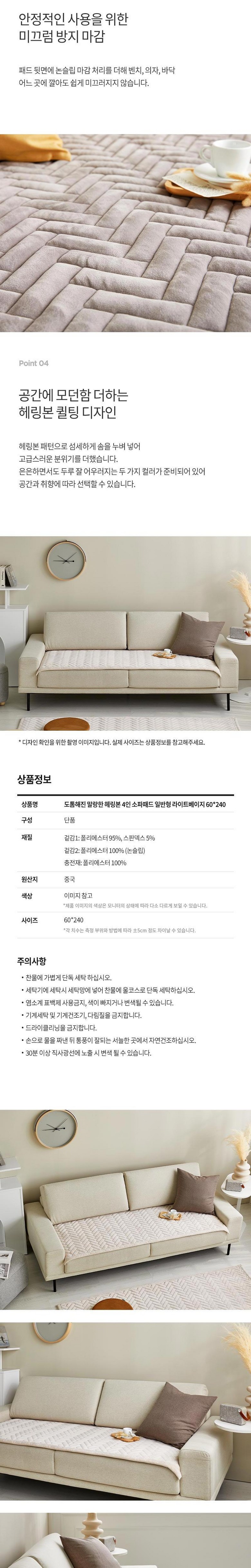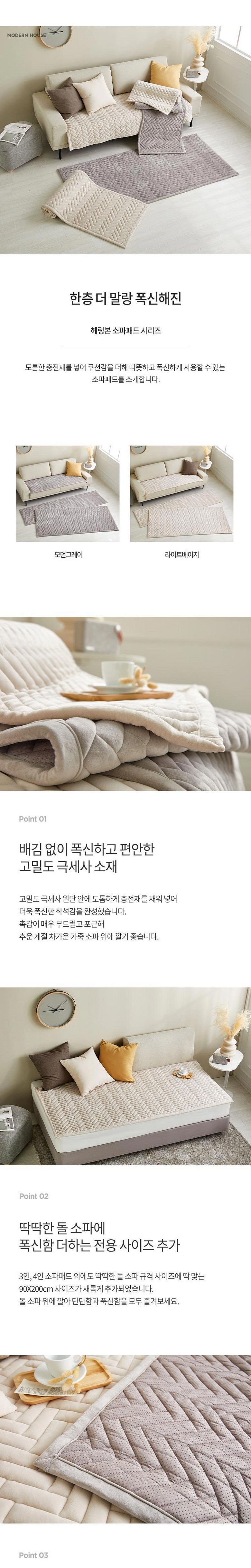 [모던하우스 충장점] 도톰해진 말랑한 헤링본 4인 소파패드 일반형 모던그레이 60*240_EM1125020
