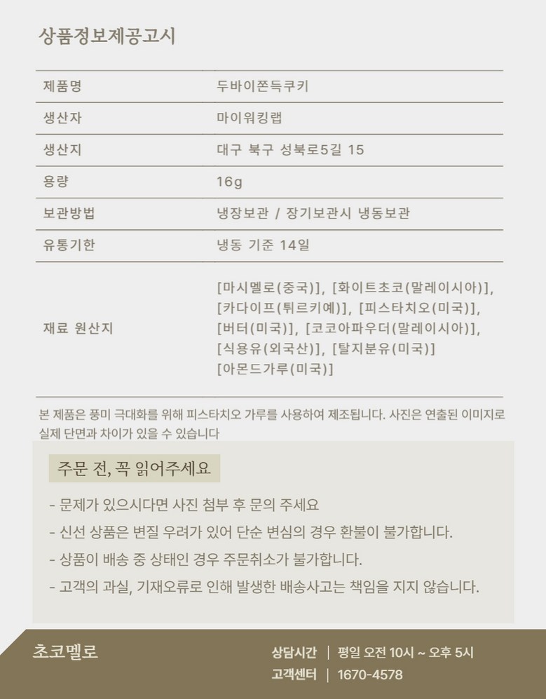 | 생산자 및 소재지 | 상품 상세페이지 참조 | 제조연월일, 소비기한 또는 품질유지기한 | 상품 상세페이지 참조 |