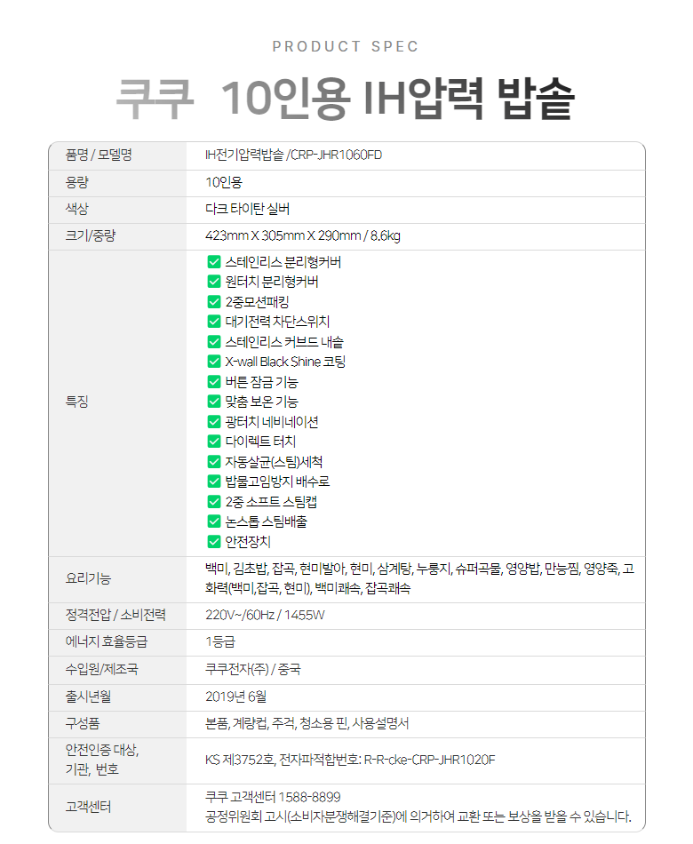 | 정격전압, 소비전력 | 상품 상세페이지 참조 | 에너지소비효율등급 | 상품 상세페이지 참조 |