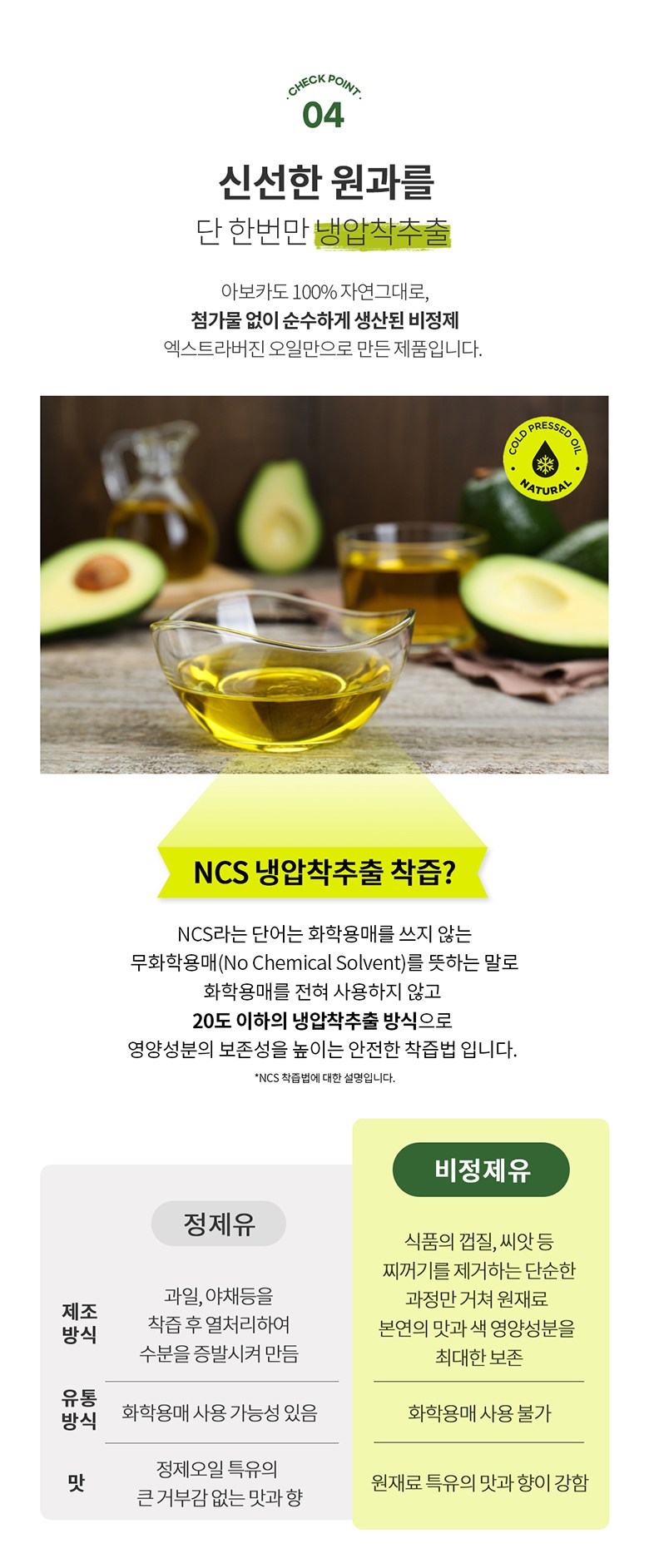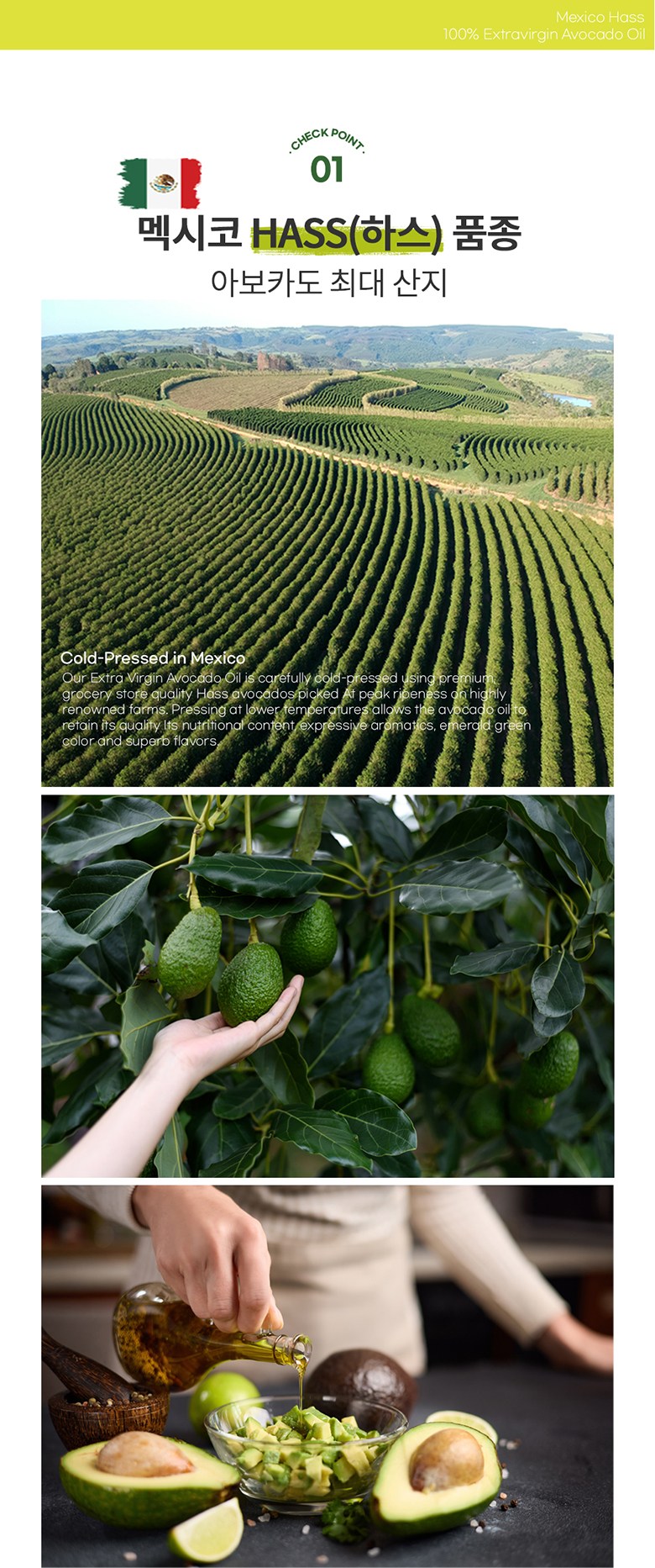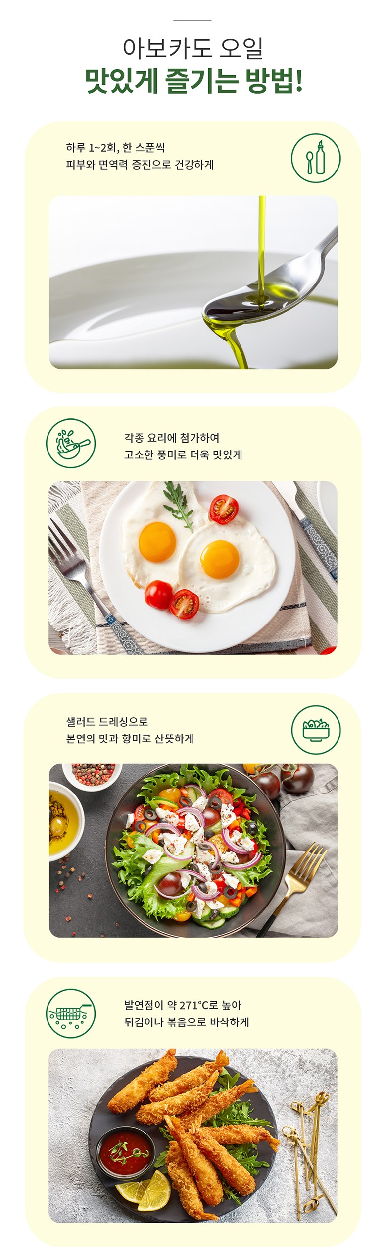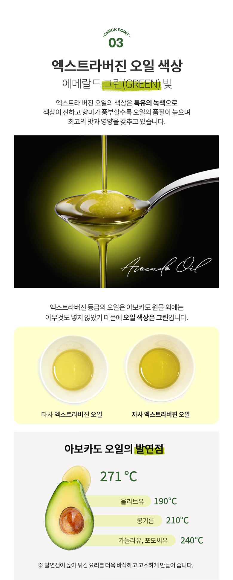 | 제품명 | 100% EXTRA VIRGIN AVOCADO OIL | 식품의 유형 | 상품 상세페이지 참조 |