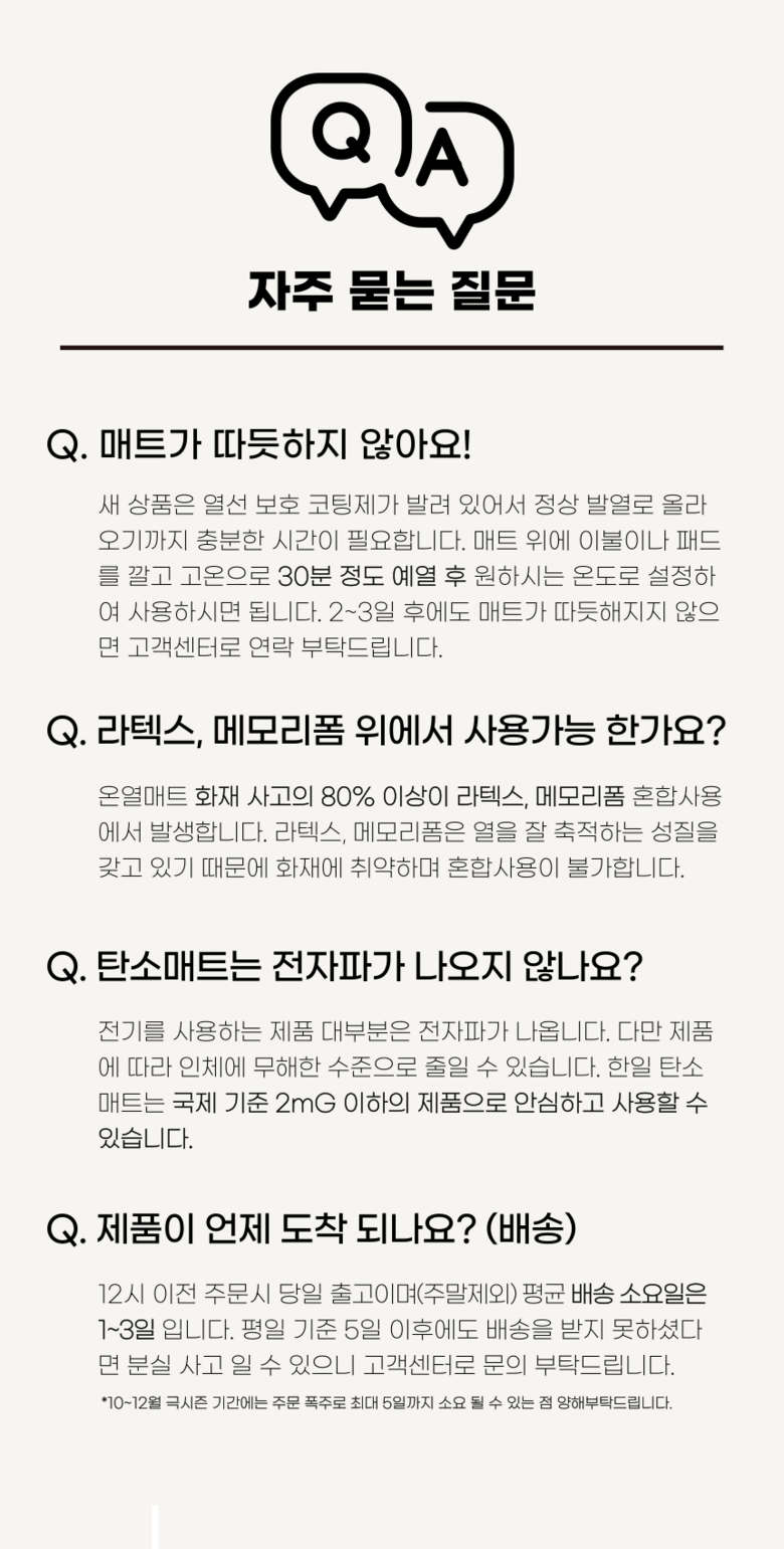 - 가격, 판매자, 교환/환불 및 배송 등 해당 상품 자체와 관련 없는 문의는 고객센터 내 1:1 문의하기를 이용해주세요.