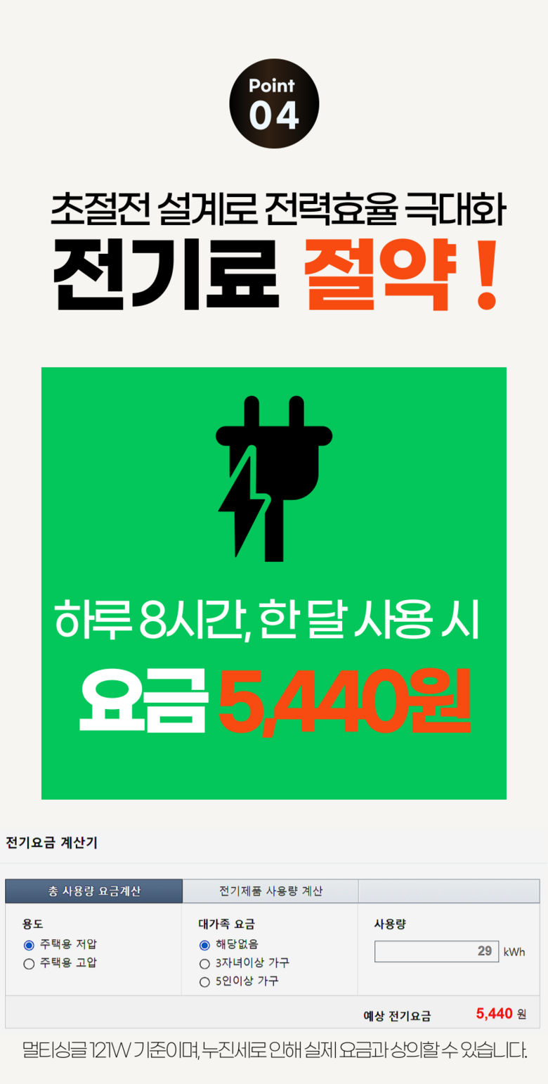 | 정격전압, 소비전력 | 상품 상세페이지 참조 | 에너지소비효율등급 | 상품 상세페이지 참조 |