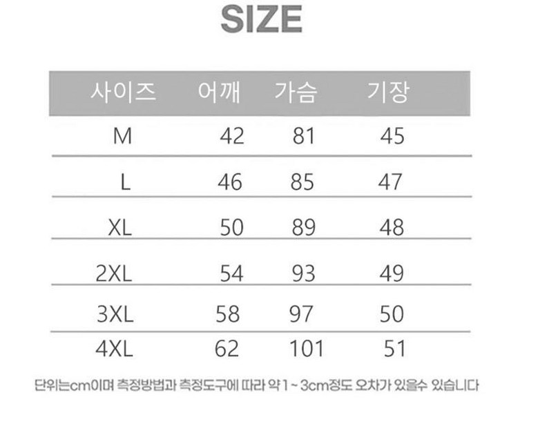 | 치수 | M,L,XL,2XL,3XL,4XL | 제조자(수입자) | 중국 |