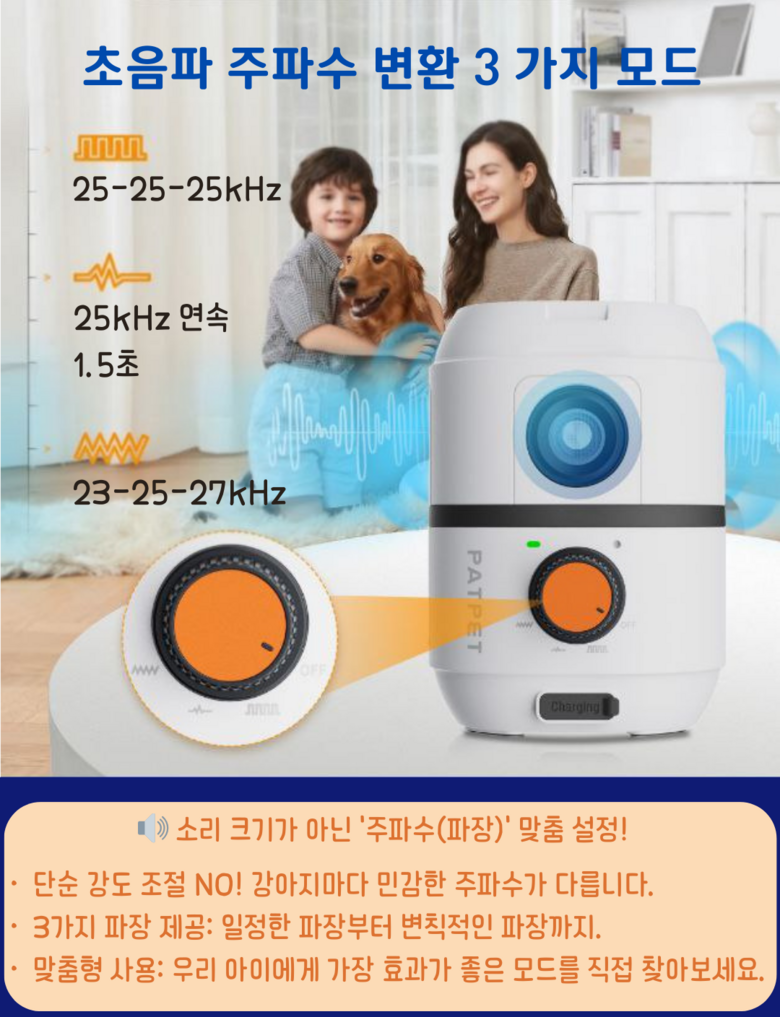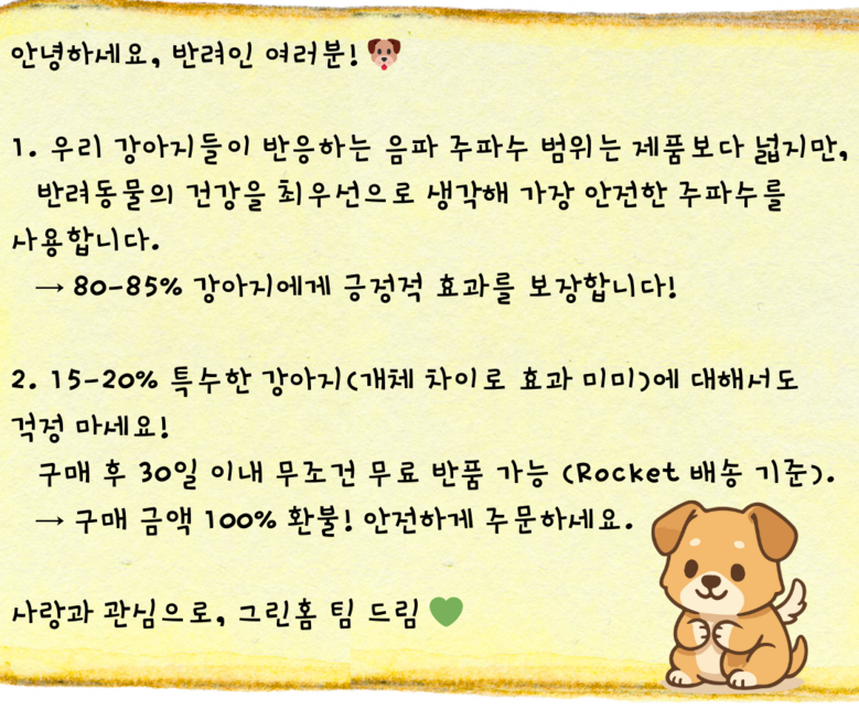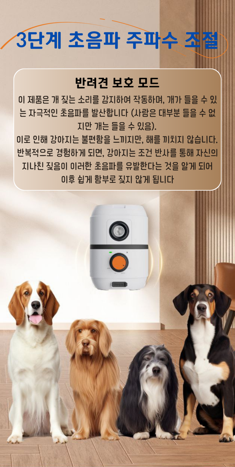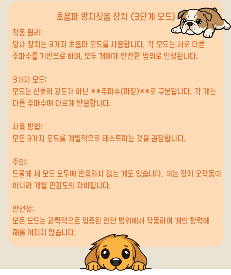 - 제품의 특정 용도: 강아지 짖임 훈련