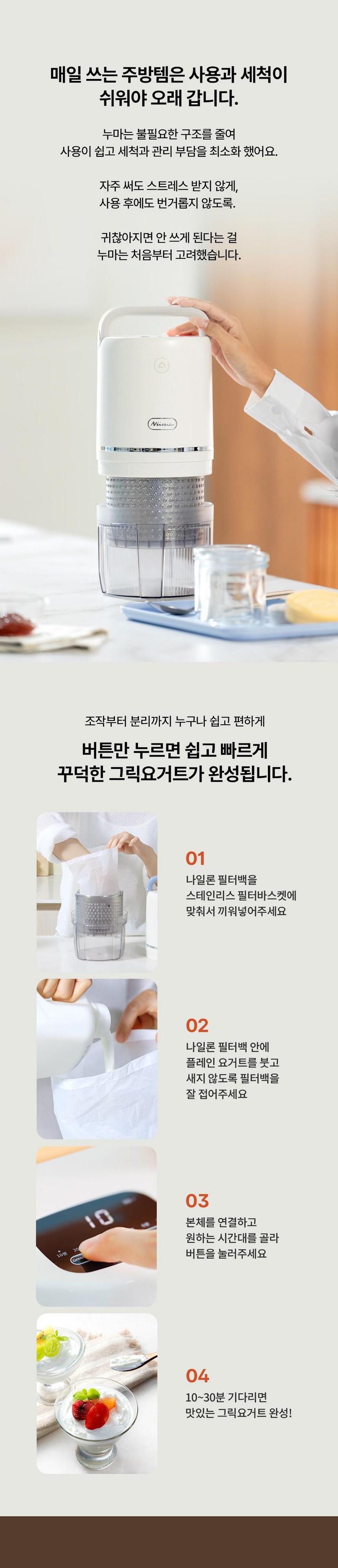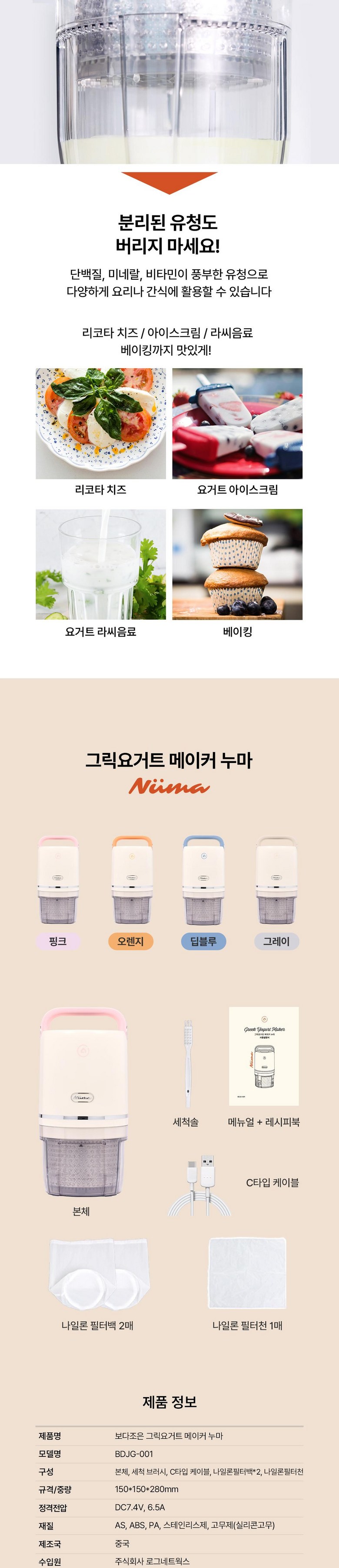 [보다조은] "10분완성" 신선하게 바로 먹는 그릭 요거트 메이커 "누마" 자동제조기 유청분리기 야채짤순이