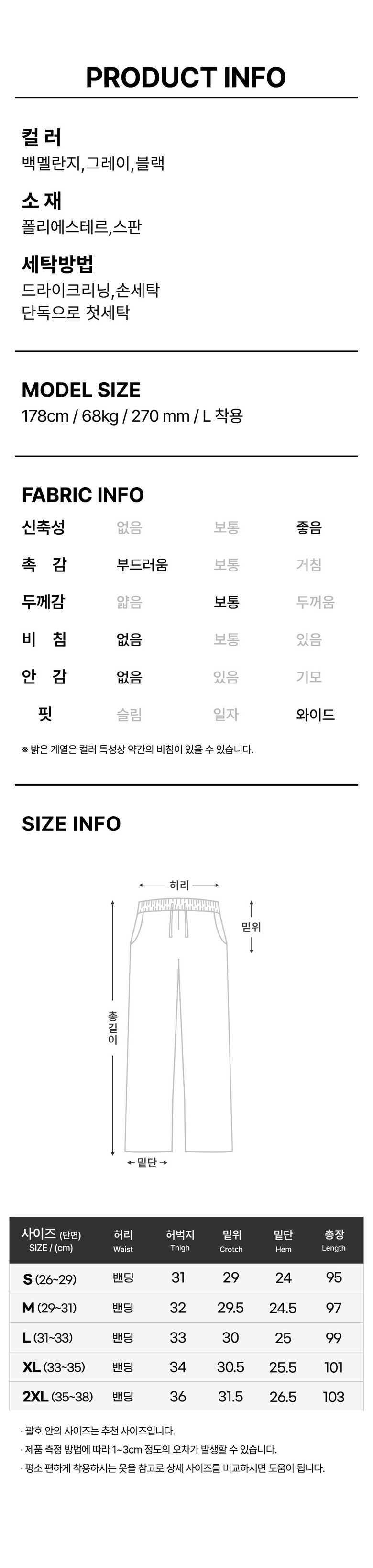 | 제품 소재 | 폴리95% , 스판5% | 색상 | 블랙 , 그레이 , 백멜란지 |