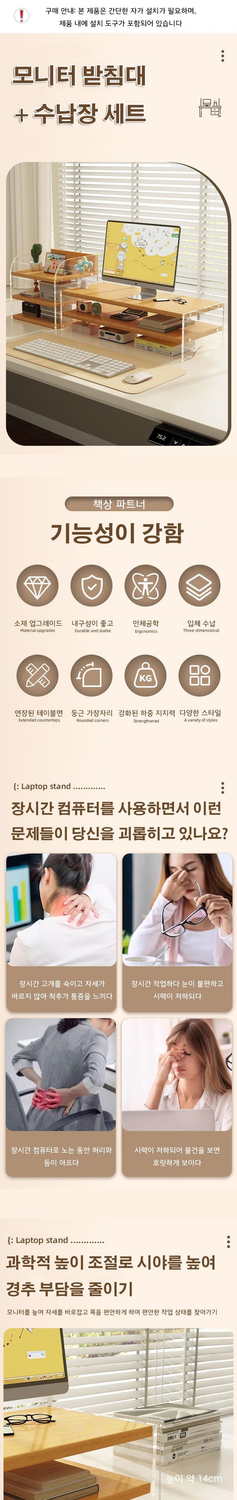 Aesero 모니터 받침대 컴퓨터 스탠드 와이드 선반 + 수납장 세트
