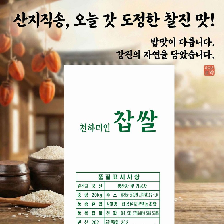 상호/대표자 | 잡곡은보약영농조합법인 / 윤 완 | 사업장 소재지 | 전라남도 강진군 군동면 라천리 625 |