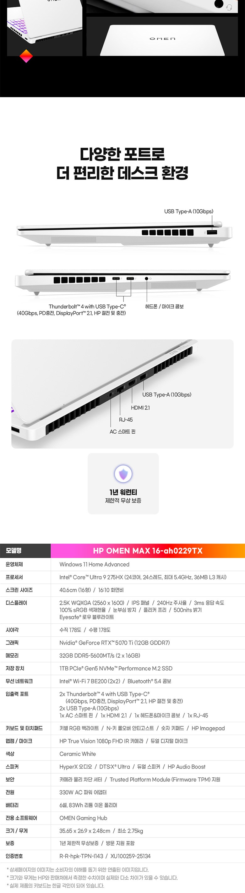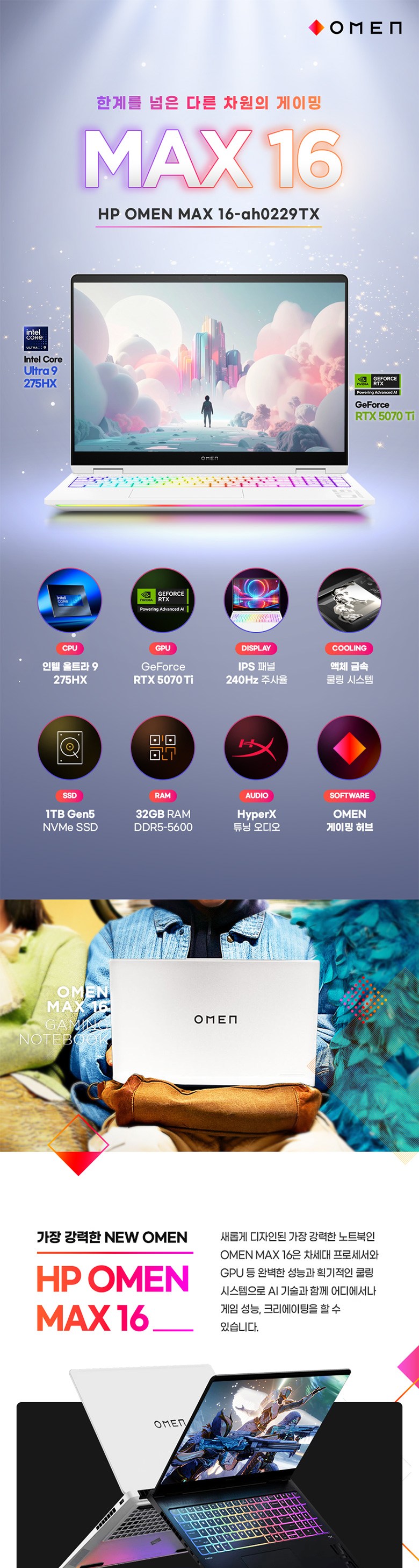 | 품명 및 모델명 | 노트북 /OMEN MAX 16 Gaming Laptop 16-ah0229tx (TPN-I143 (C) ) | KC 인증정보 | XU100259-25134,R-R-hpk-TPN-I143 |