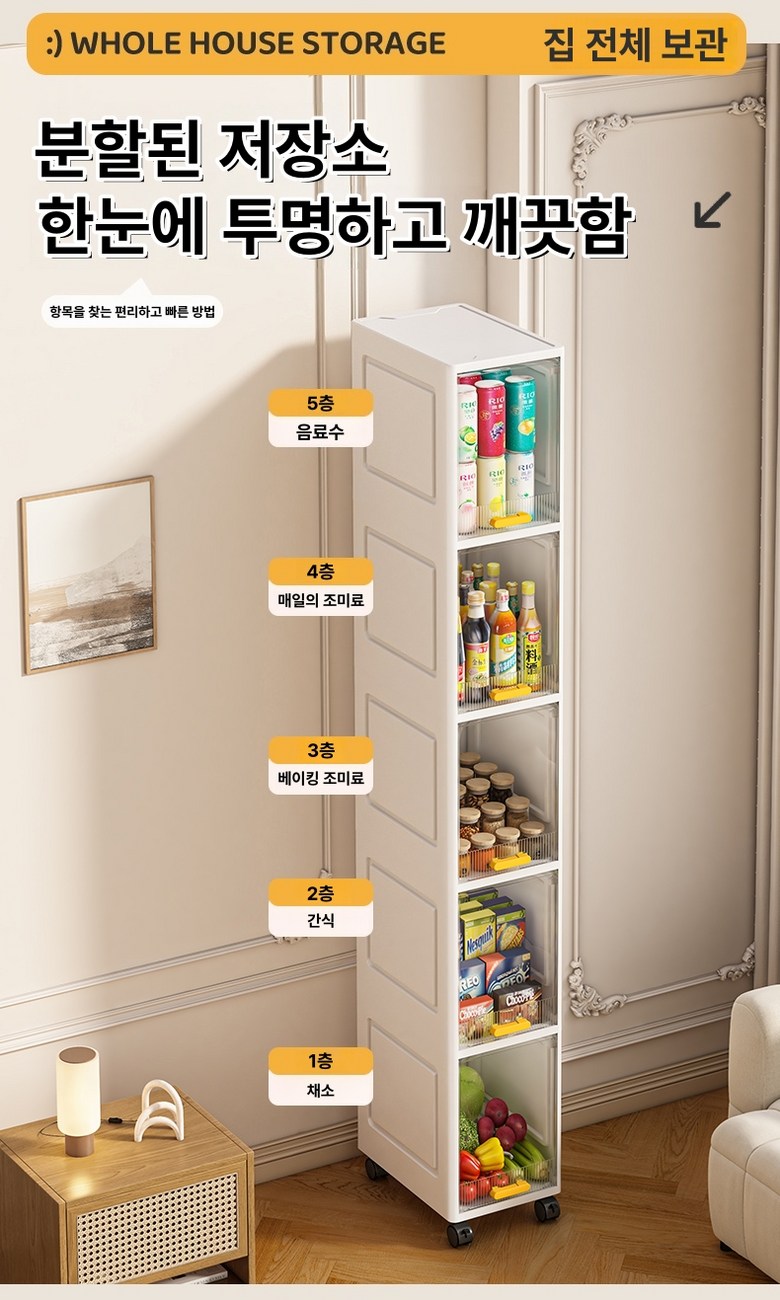 CUBBYCASE 이동플랩형 틈새수납장 틈새장 다용도