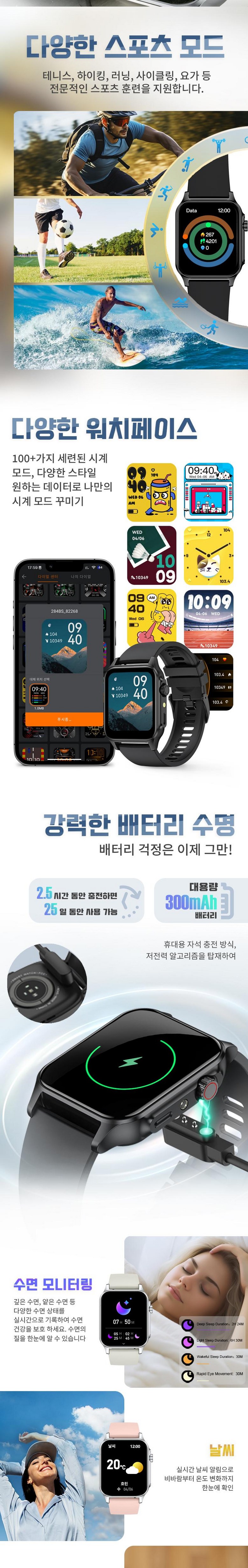 이 스마트 워치는 사용자가 더 건강한 생활을 할 수 있도록 도와줍니다. 걷기, 달리기, 등산, 자전거 타기, 농구와 같은 다양한 운동 모드를 인식하며, 더 다양한 운동을 추천합니다. 또한, 알림 기능이 잘 갖추어져 있어 휴대폰을 들고 있지 않아도 중요한 알림을 놓치지 않습니다. 휴대폰 소프트웨어와 연동되어 편리하게 사용할 수 있습니다.