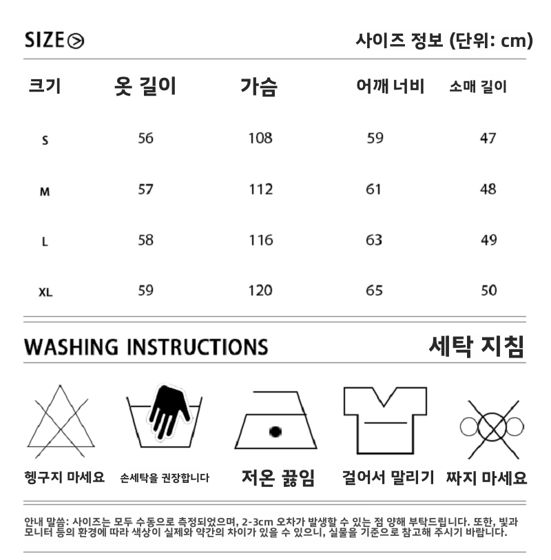 | 제조국 | CHINA | 세탁방법 및 취급시 주의사항 | 단독세탁 권장 |