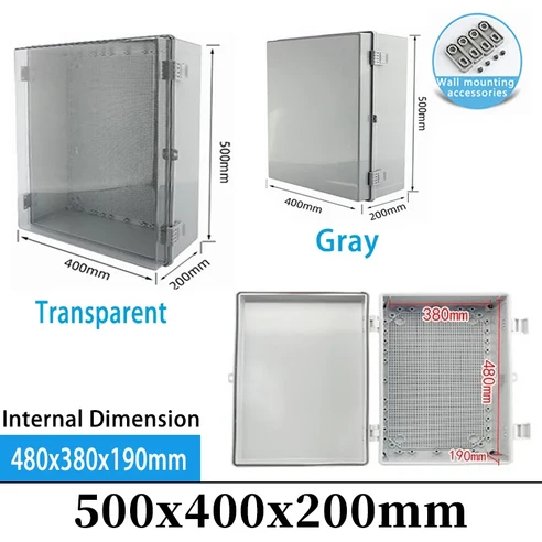 IP66 ABS PC 회색/투명 커버 인클로저 전원 분배함 힌지 야외 방수 플라스틱 전기