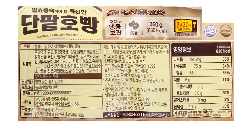 | 제품명 | 단팥호빵 | 식품의 유형 | 컨텐츠 참조 |
