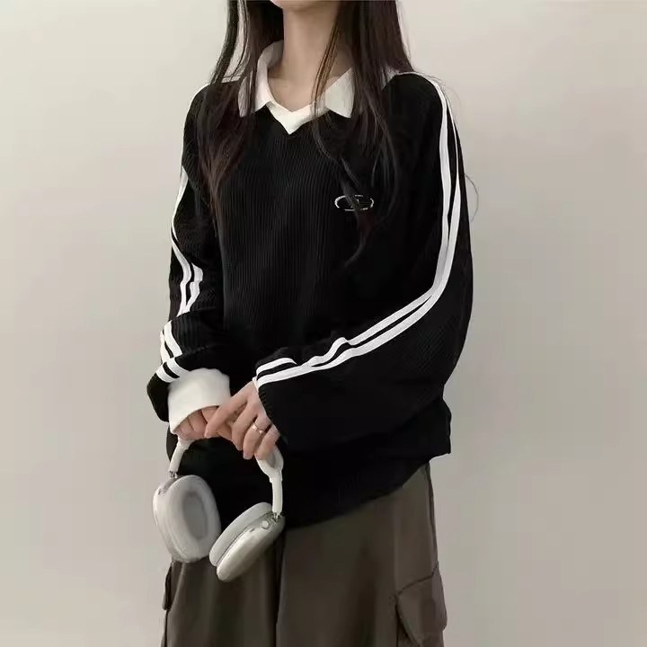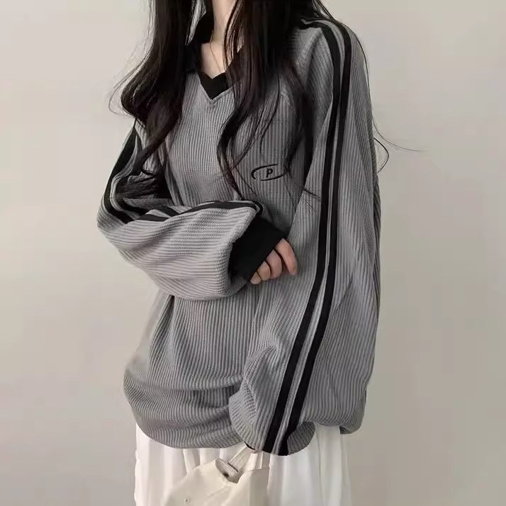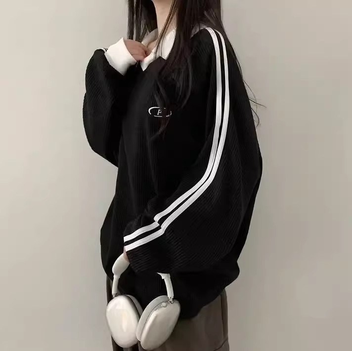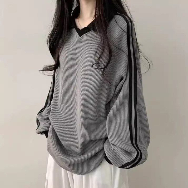 투니스 여성 루즈핏 폴로넥 심플 긴소매 티셔츠