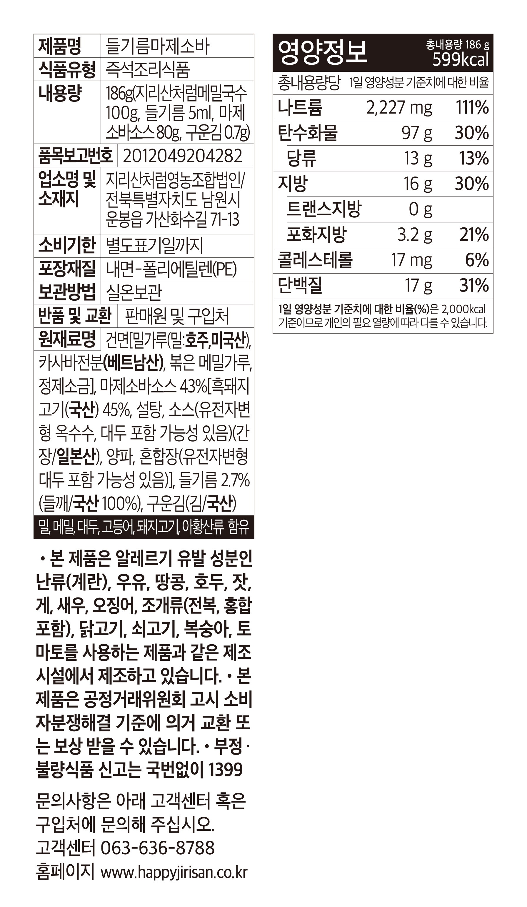 | 포장단위별 내용물의 용량(중량), 수량 | 186g x 1개입 x 2개 | 원재료명 및 함량 | 컨텐츠 참조 |
