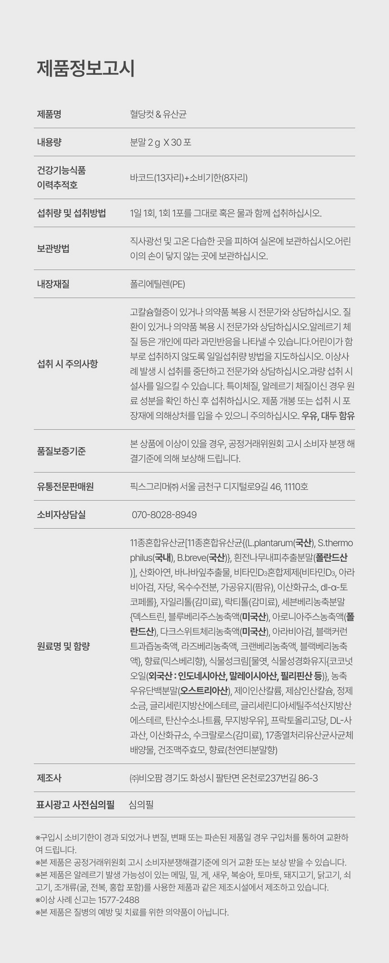 | 원료명 및 함량 | 상품 상세페이지 참조 | 영양정보 | 상품 상세페이지 참조 |
