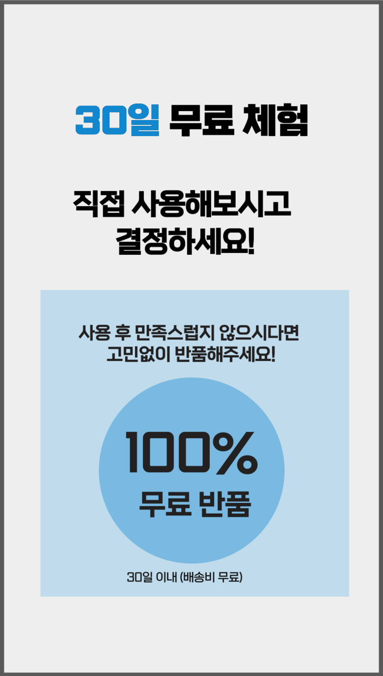 - ㆍ모니터 해상도의 차이로 인해 색상이나 이미지가 실제와 달라, 고객이 단순 변심으로 교환/반품을 무료로 요청하는 경우
