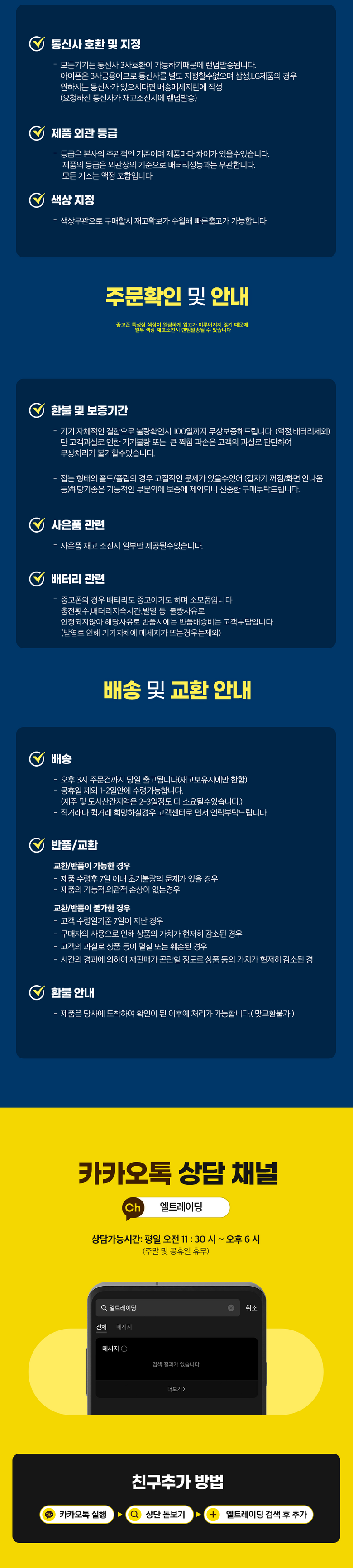 - ㆍ제조사의 사정 (신모델 출시 등) 및 부품 가격 변동 등에 의해 무료 교환/반품으로 요청하는 경우