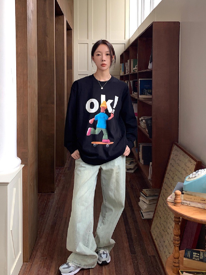 투니스 여성 라운드넥 프린팅 루즈핏 긴소매 티셔츠