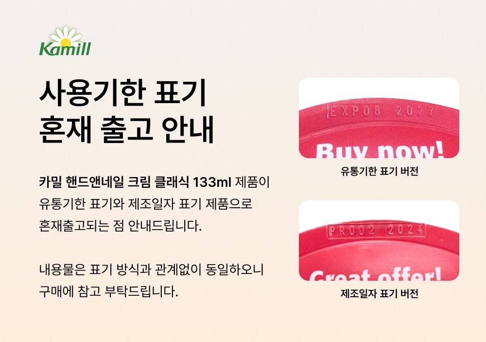 ※ 리뉴얼 진행중인 상품으로 사용기한 표기가 상이한 동일 제품을 수령하실 수 있습니다.