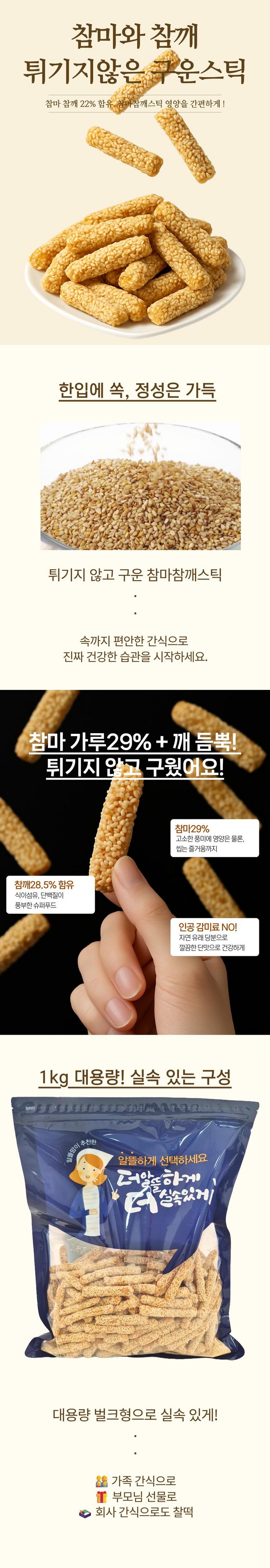 [가성비 대용량 1kg] 구운참마깨스틱 건강간식 다이어트간식 참마간식 참깨간식 어르신간식 부모님간식 간편간식 명절선물 전통간식 사무실간식, 1000g, 1개