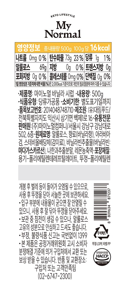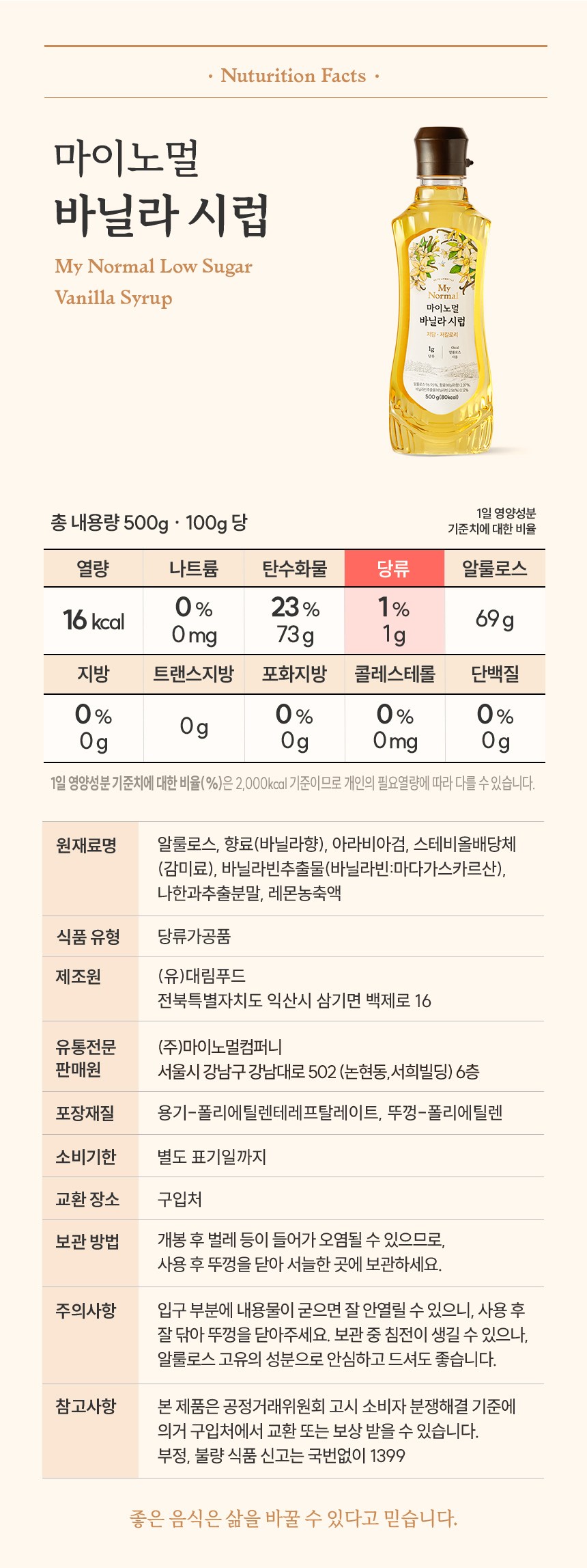 | 포장단위별 내용물의 용량(중량), 수량 | 500g x 1개 | 원재료명 및 함량 | 컨텐츠 참조 |