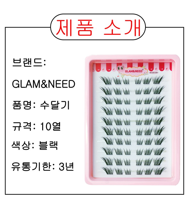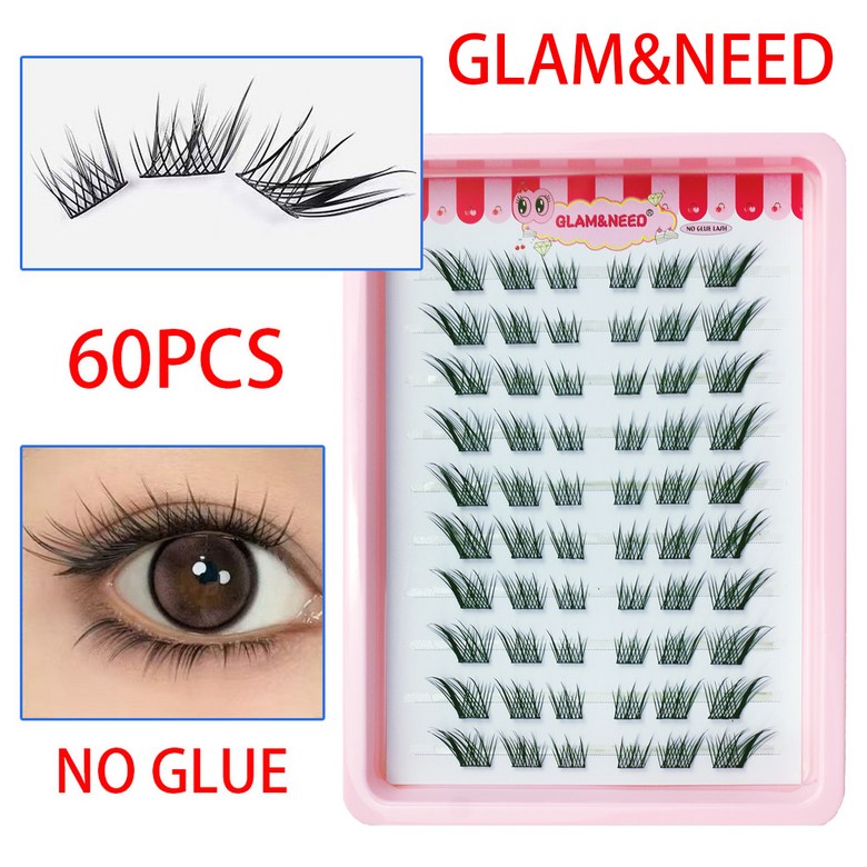 glam&need 60가닥 풀 필요 없는 노글루 가닥 속눈썹 대용량 언더