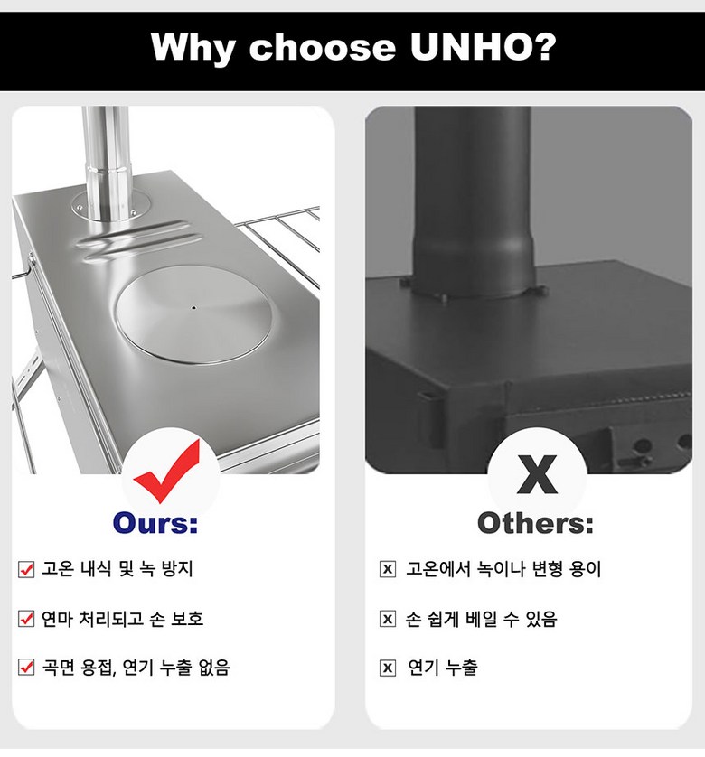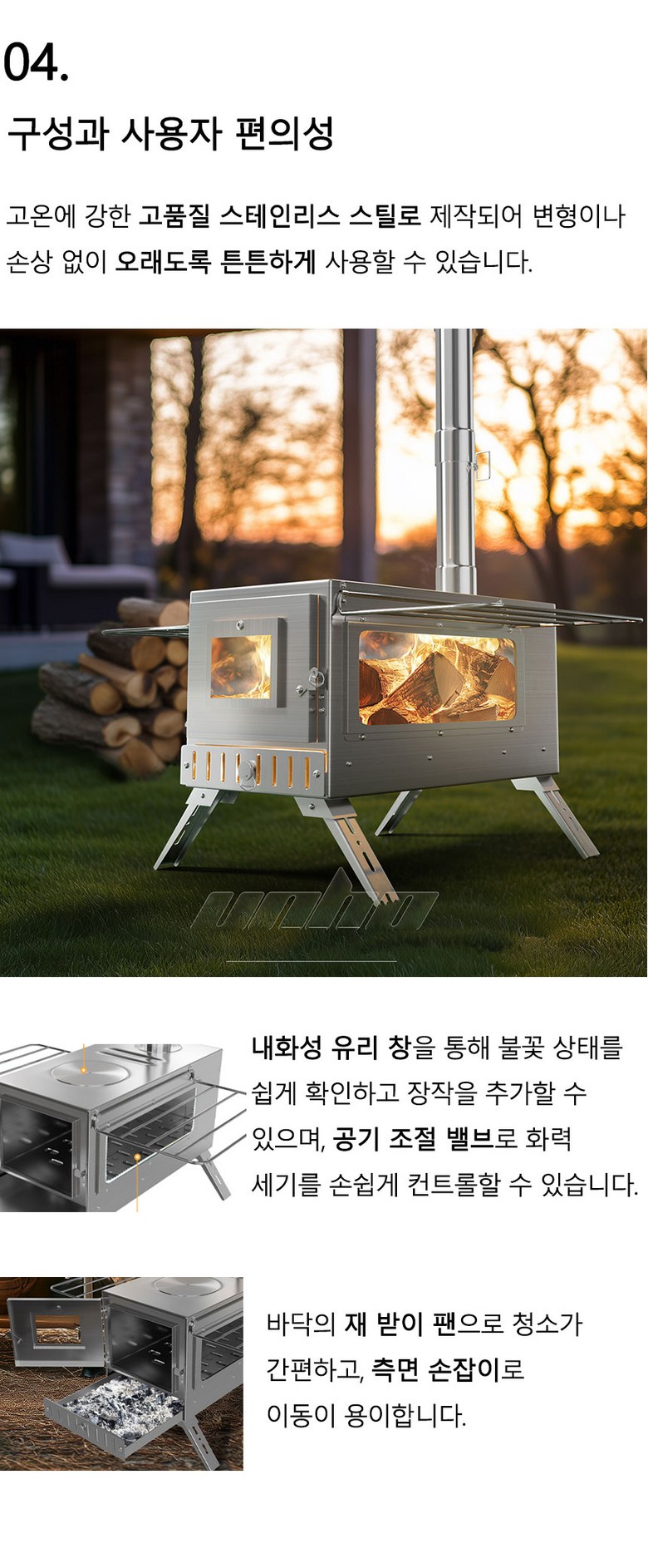 UNHO 화목난로 캠핑난로 스텐 장작화덕 화로대+휴대용 가방