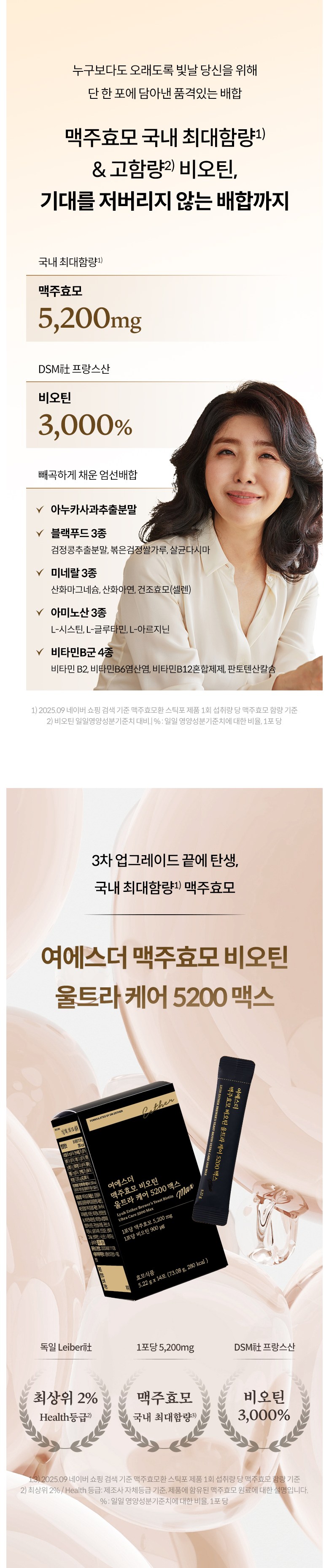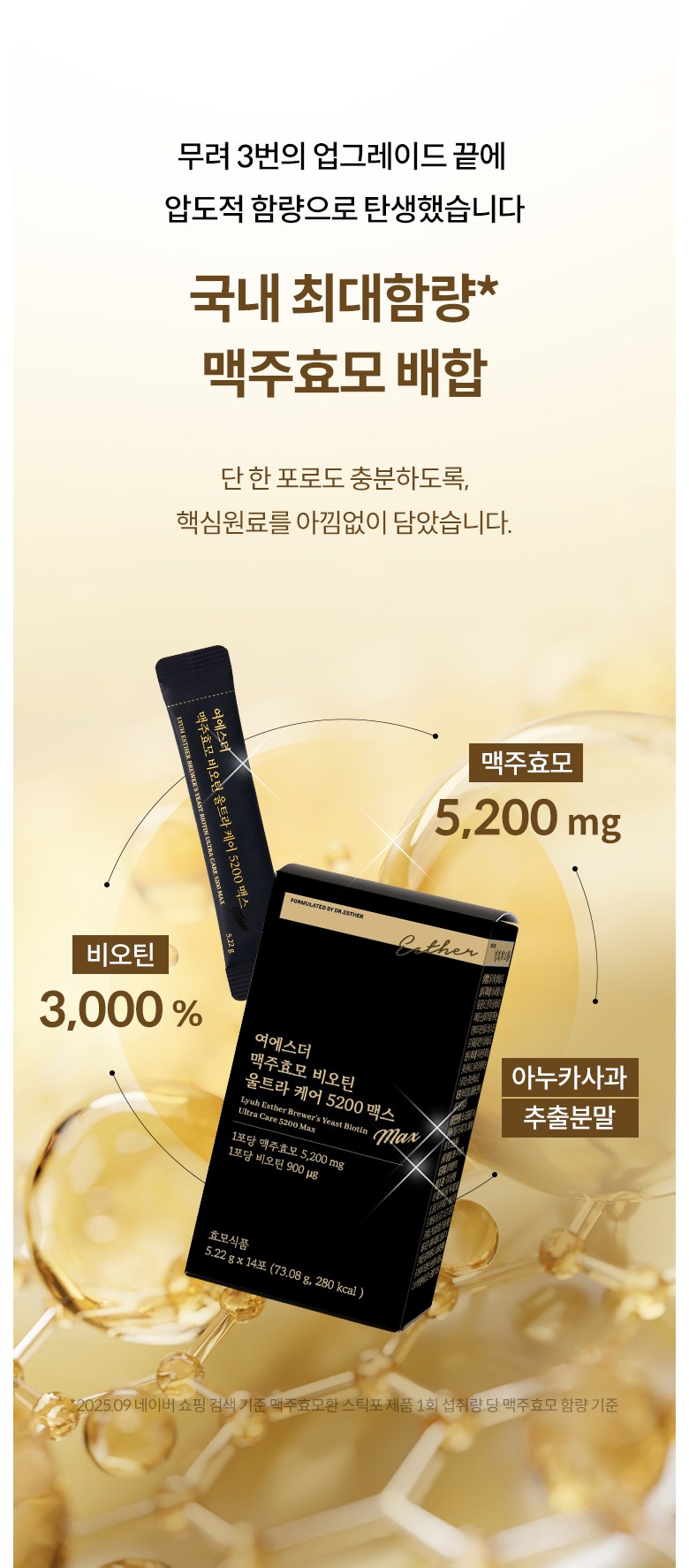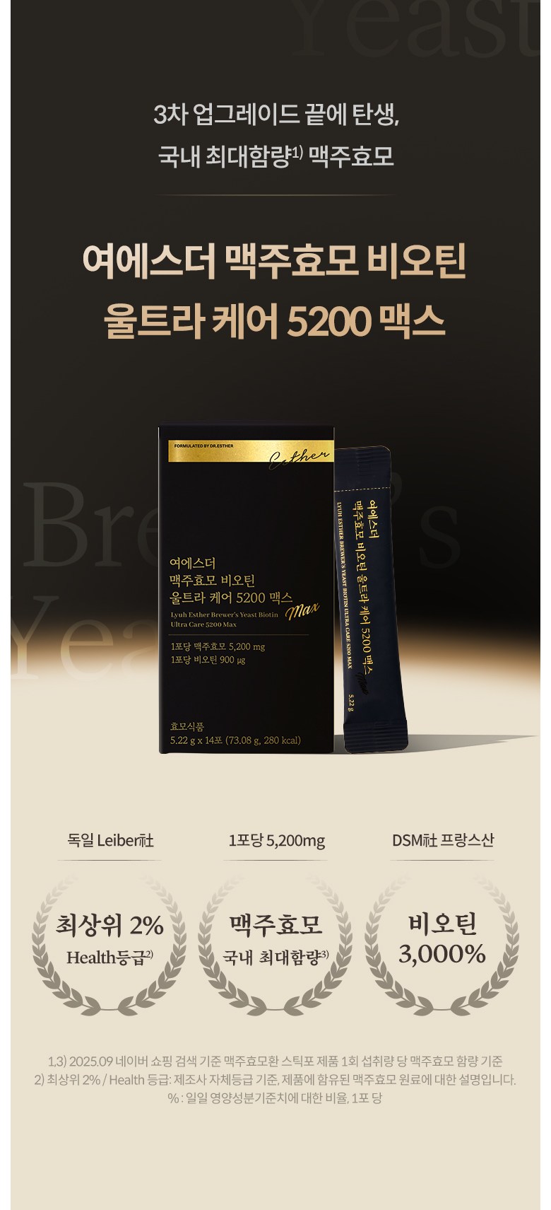 [국민영양 프로젝트] 여에스더 맥주효모&비오틴 울트라 케어 5200 맥스 (국내 최대 함량 맥주효모&비오틴 3 000%), 14회분, 6박스
