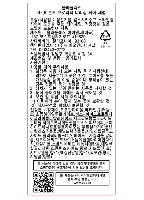 - 헤어케어 타입: 영양/윤기