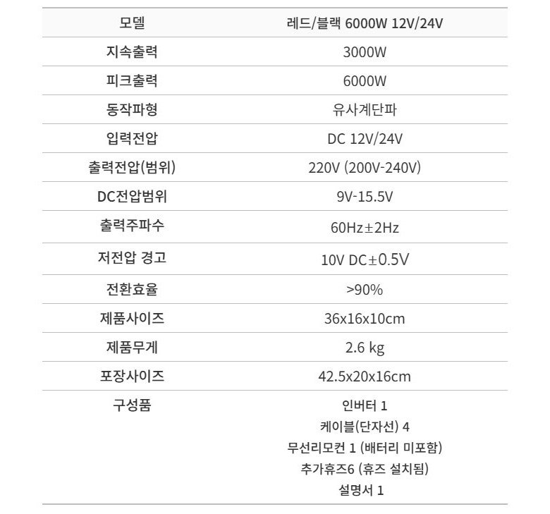 - 최대용량: 6000W