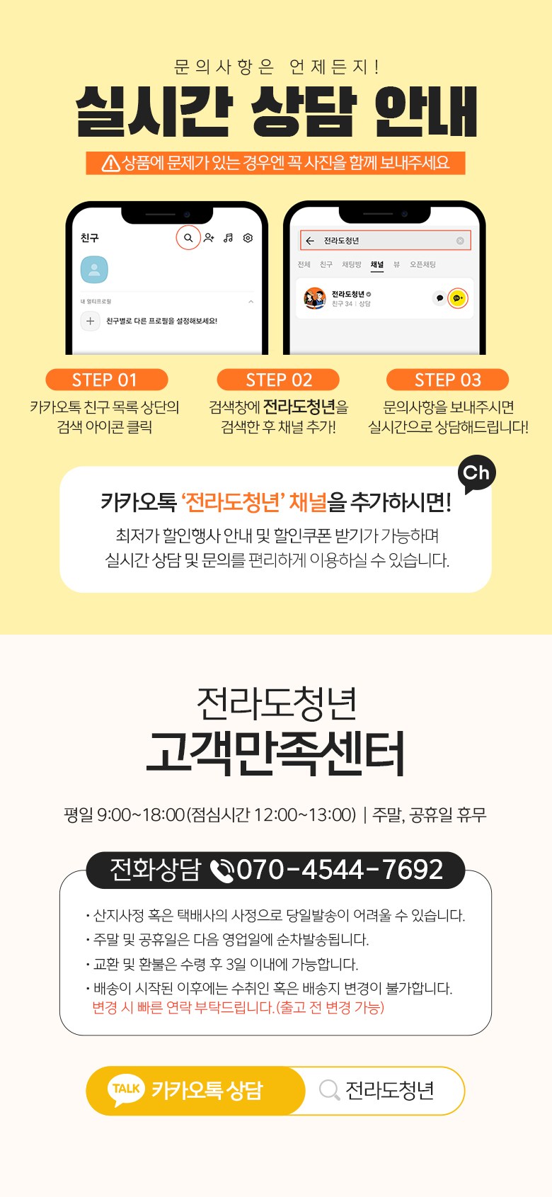 - ㆍ모니터 해상도의 차이로 인해 색상이나 이미지가 실제와 달라, 고객이 단순 변심으로 교환/반품을 무료로 요청하는 경우