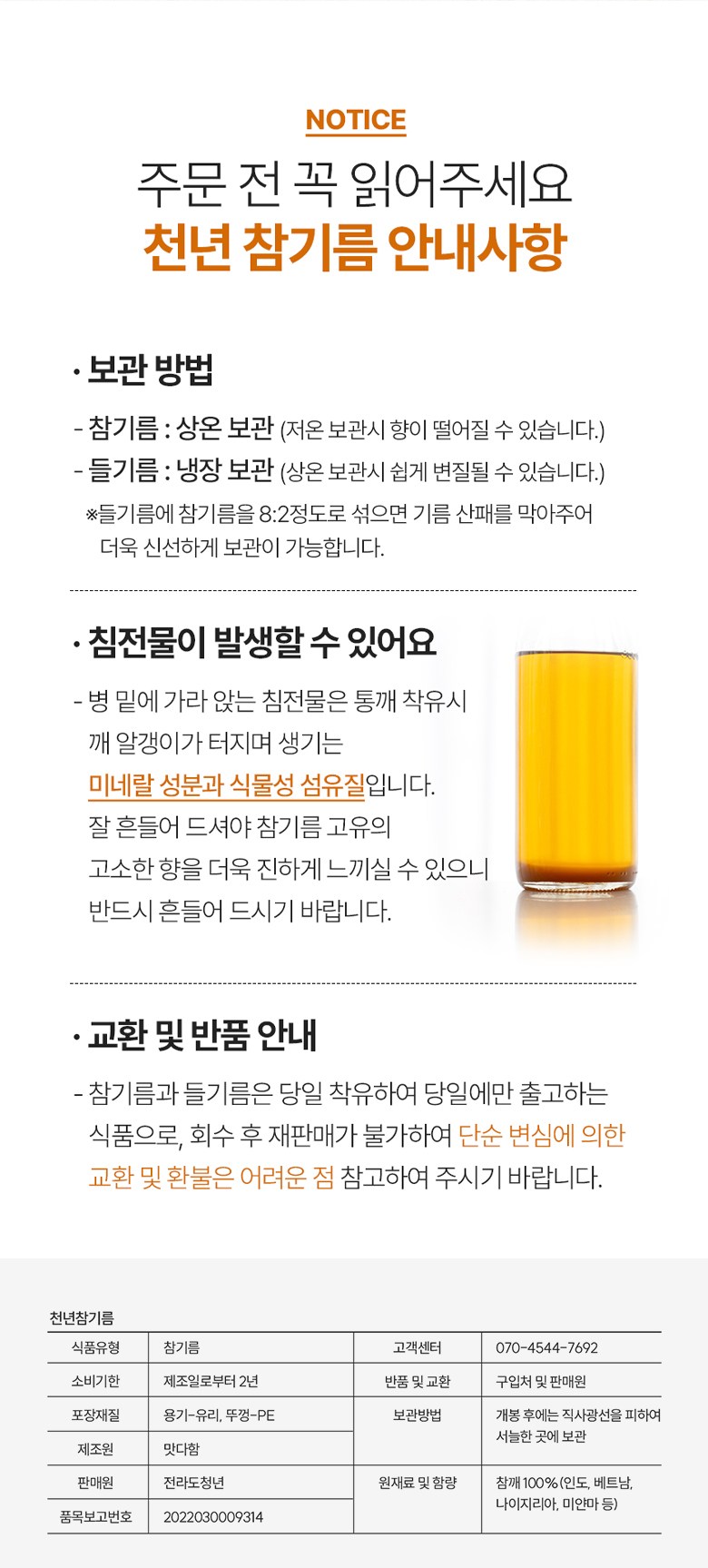 | 생산자(수입자) | 전라도청년 | 원산지 | 참깨-인도산 등/들깨-중국산 / 국내제조 |