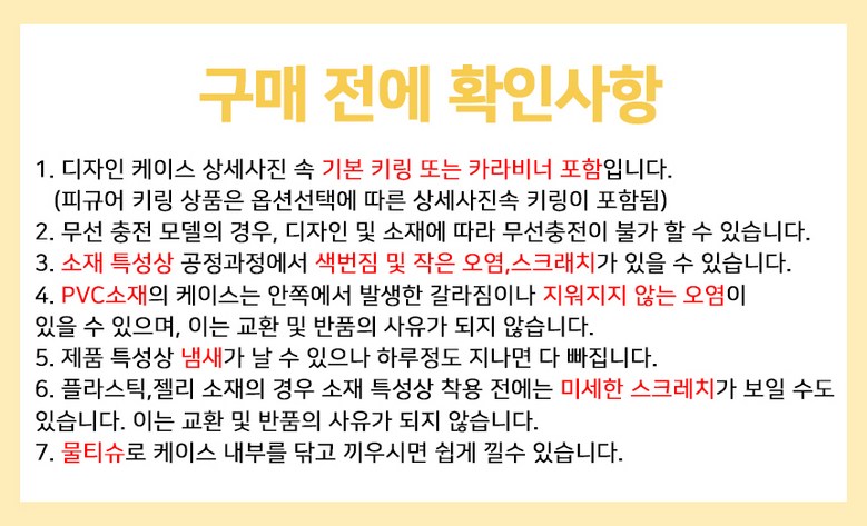 - ㆍ모니터 해상도의 차이로 인해 색상이나 이미지가 실제와 달라, 고객이 단순 변심으로 교환/반품을 무료로 요청하는 경우