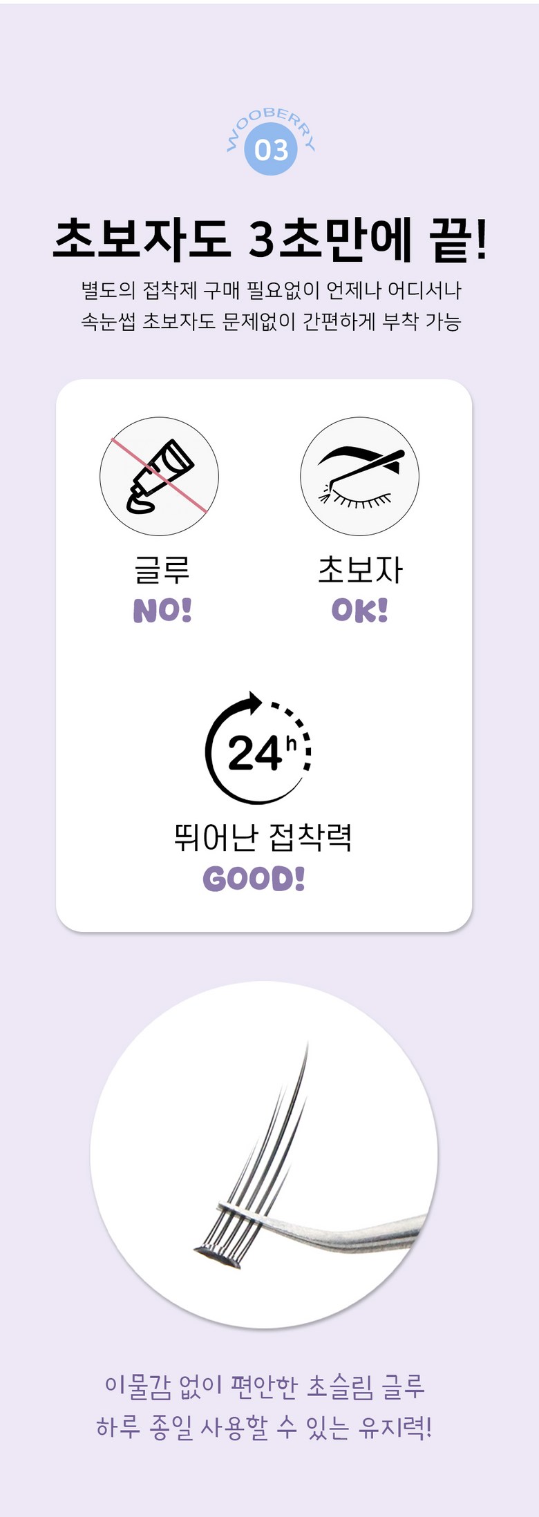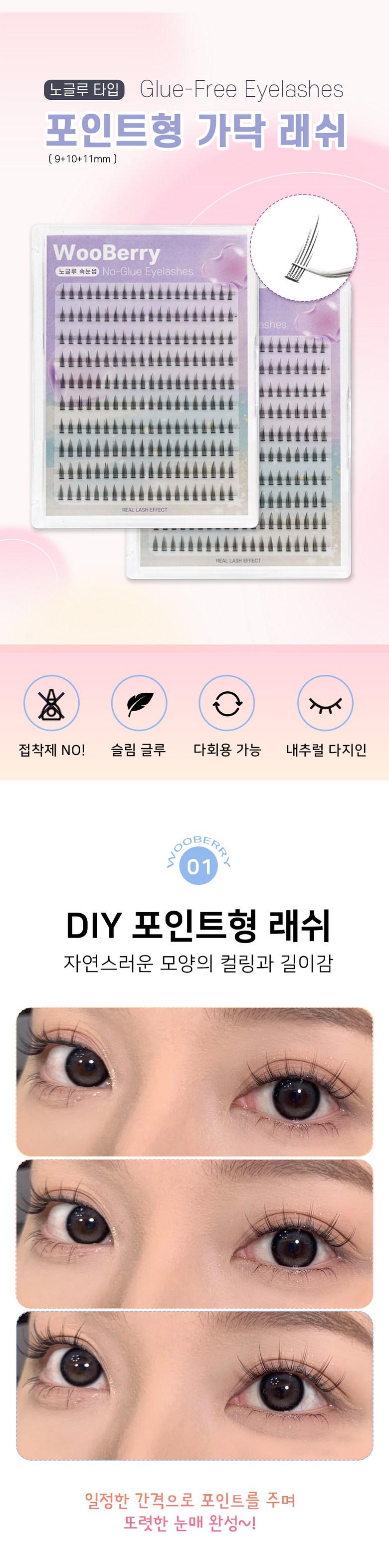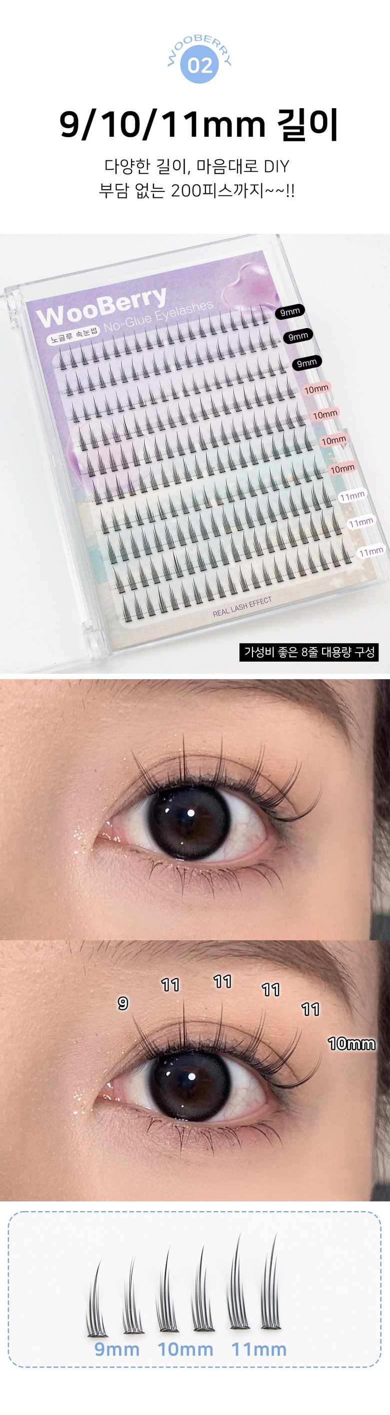 WooBerry 노글루 가닥속눈썹 자연스러운 포인트연장 풀 필요없는 아이래쉬 9+10+11mm 대용량 200pcs