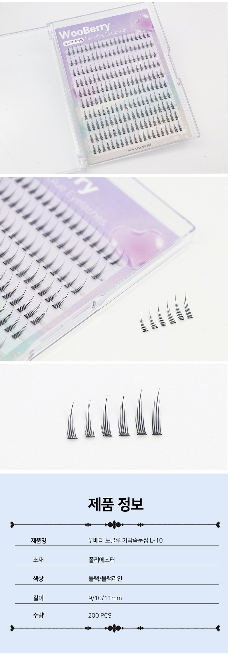 | 품명 및 모델명 | WooBerry 노글루 속눈썹 L-10(200pcs) | 인증/허가 사항 | 상품 상세페이지 참조 |