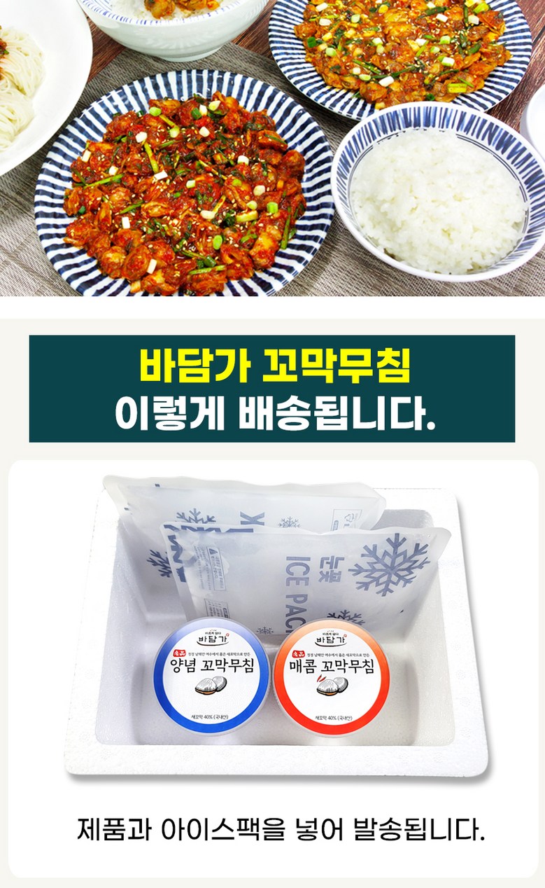 | 제품명 | 바담가 꼬막무침 set(양념꼬막+매콤꼬막) | 식품의 유형 | 수산물가공품 (가열하지 않고 섭취하는 냉동식품) |