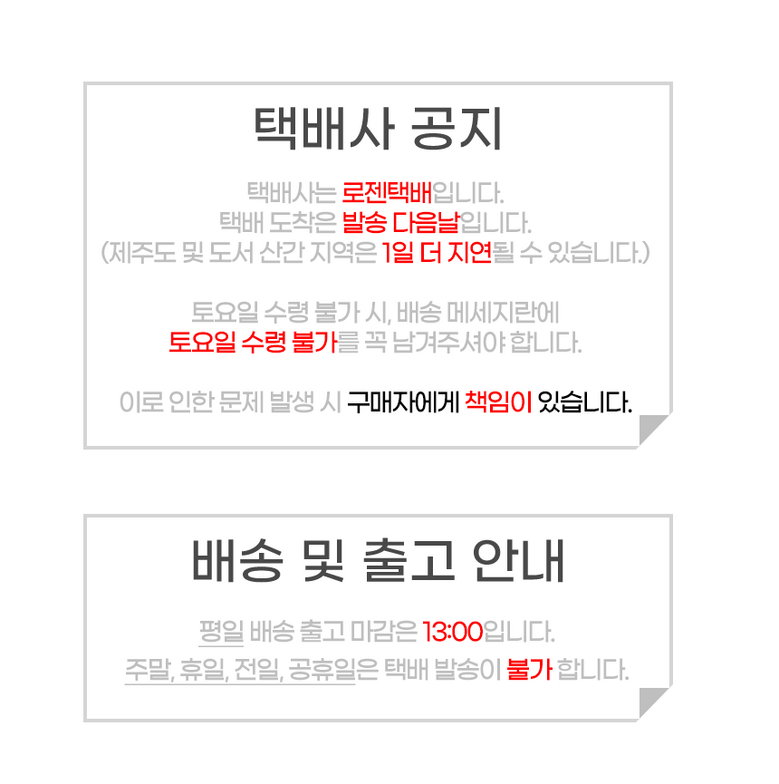 - ㆍ모니터 해상도의 차이로 인해 색상이나 이미지가 실제와 달라, 고객이 단순 변심으로 교환/반품을 무료로 요청하는 경우