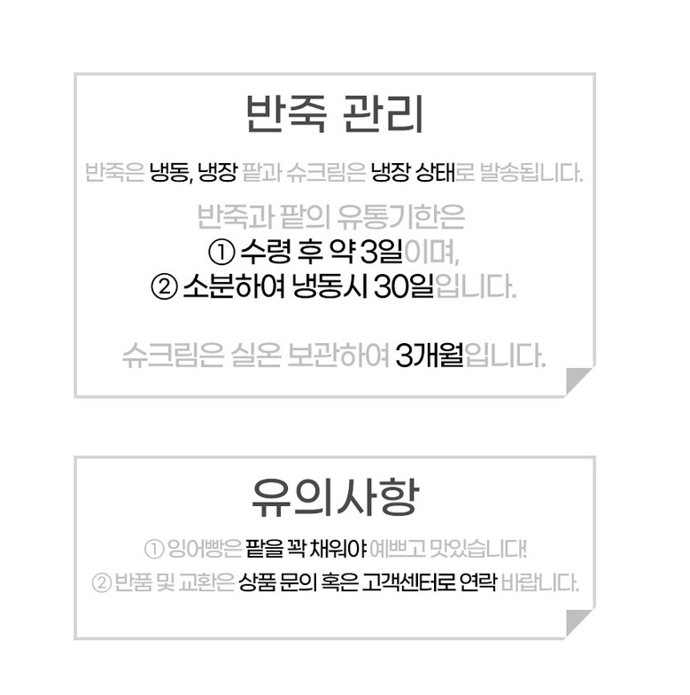 | 교환/반품 신청 기준일 | ㆍ단순변심에 의한 교환/반품은 제품 수령 후 7일 이내까지, 교환/반품 제한사항에 해당하지 않는 경우에만 가능 (배송비용과 교환/반품 비용 왕복배송비 고객부담) ㆍ상품의 내용이 표시·광고의 내용과 다른 경우에는 상품을 수령한 날부터 3개월 이내, 그 사실을 안 날 또는 알 수 있었던 날부터 |