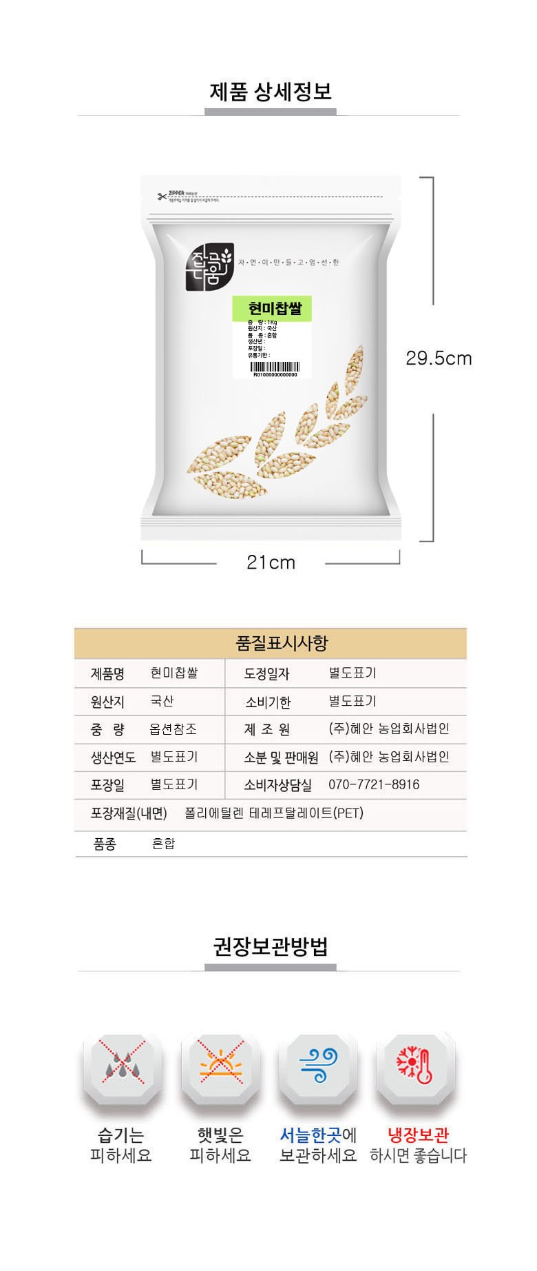 | 생산자(수입자) | 생산자 : (주)혜안 농업회사법인 / 경기도 화성시 팔탄면 덕우리 202 | 원산지 | 국산 |