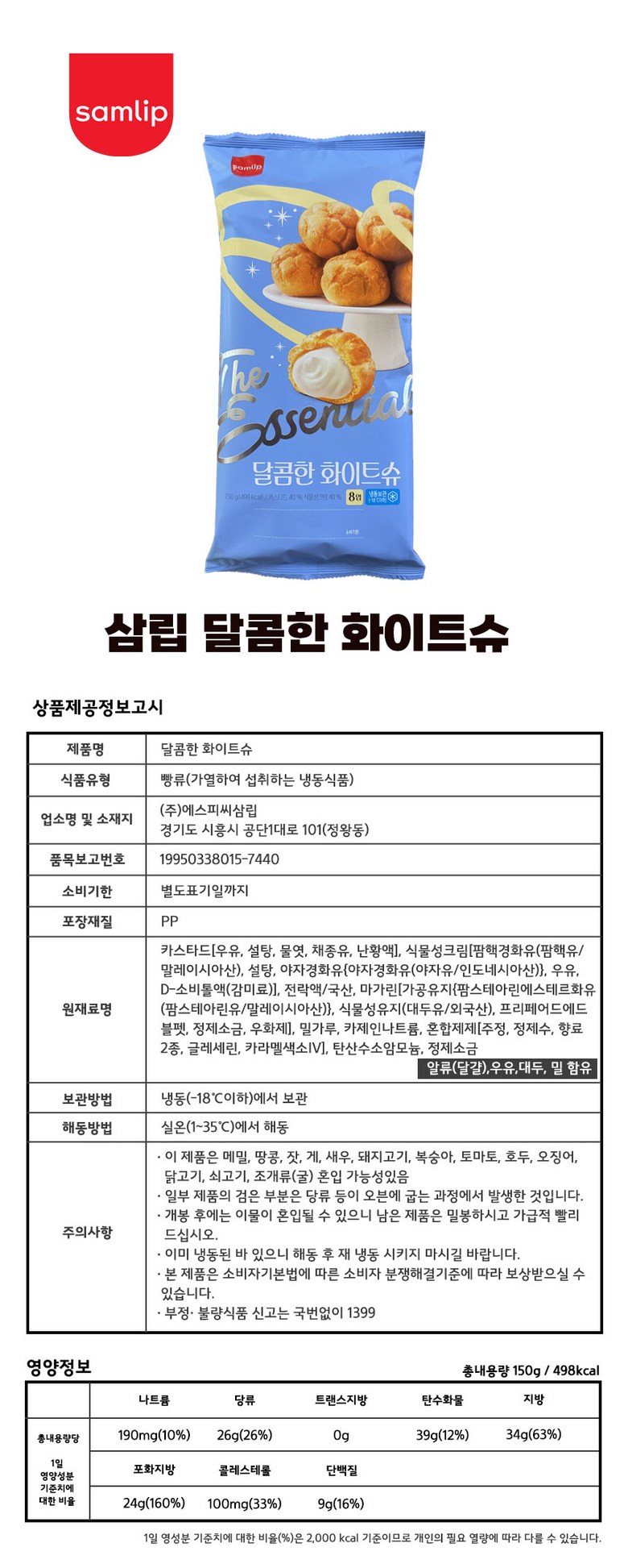 | 생산자 및 소재지 | 상품 상세페이지 참조 | 제조연월일, 소비기한 또는 품질유지기한 | 상품 상세페이지 참조 |