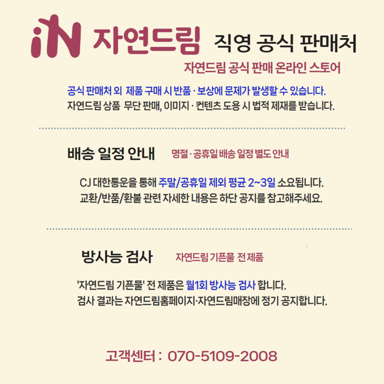 - ㆍ모니터 해상도의 차이로 인해 색상이나 이미지가 실제와 달라, 고객이 단순 변심으로 교환/반품을 무료로 요청하는 경우