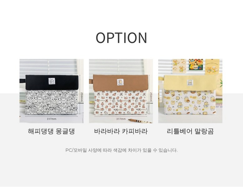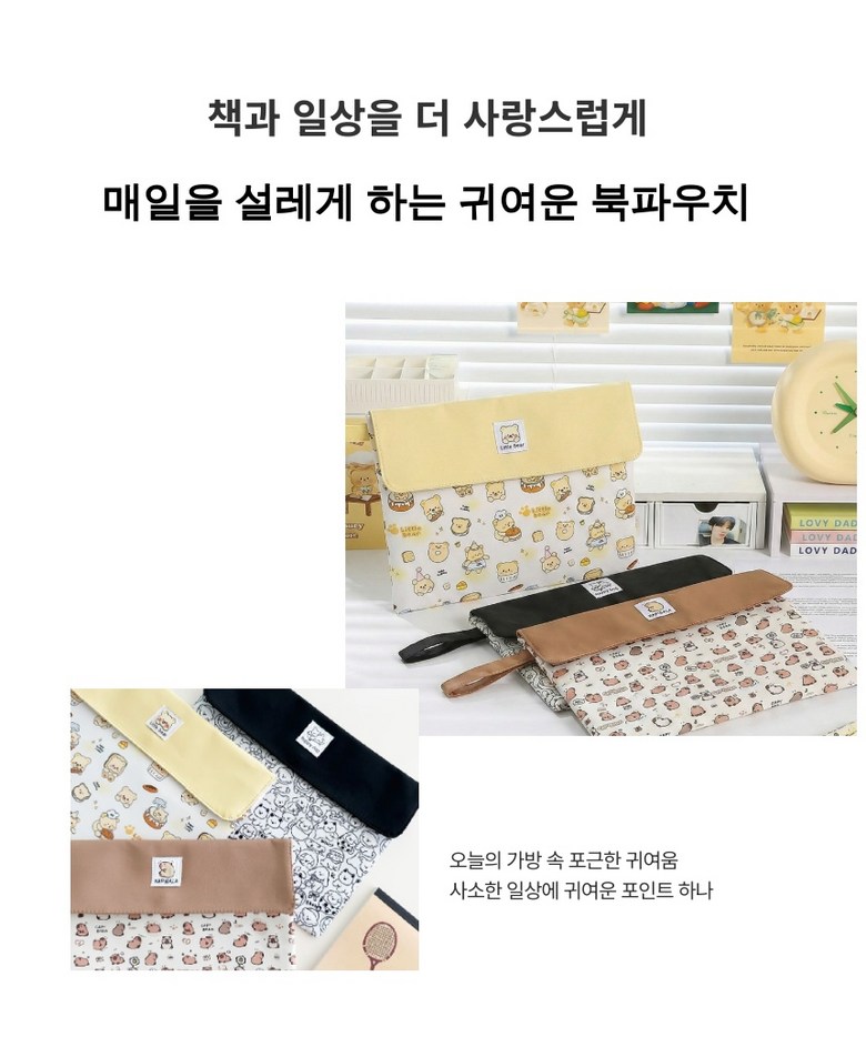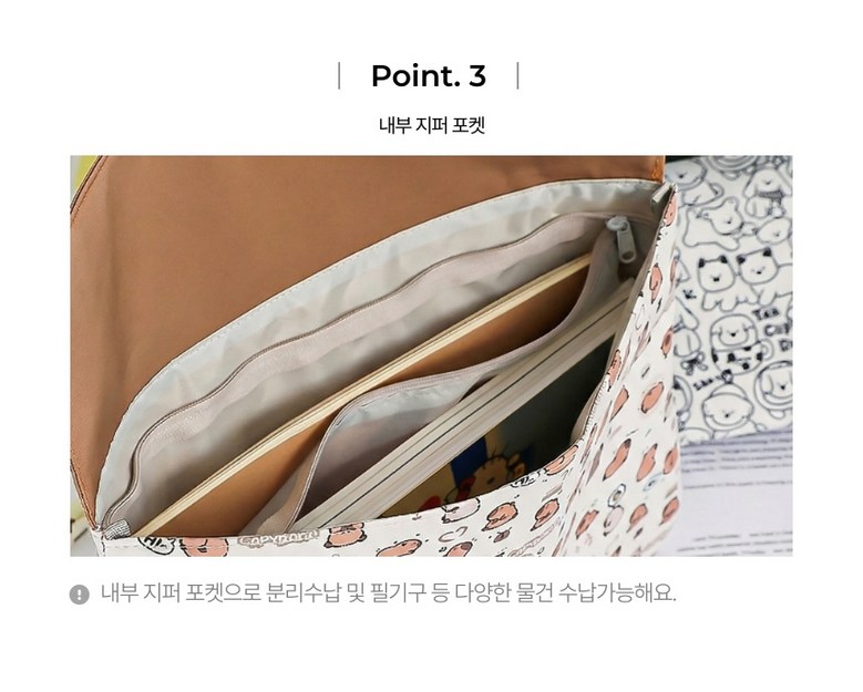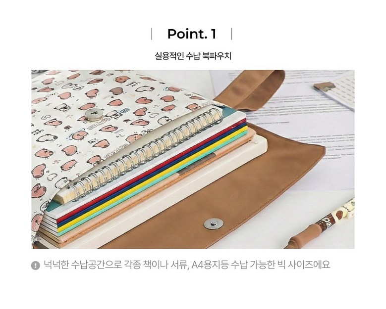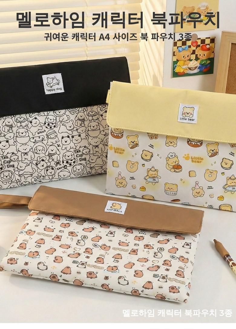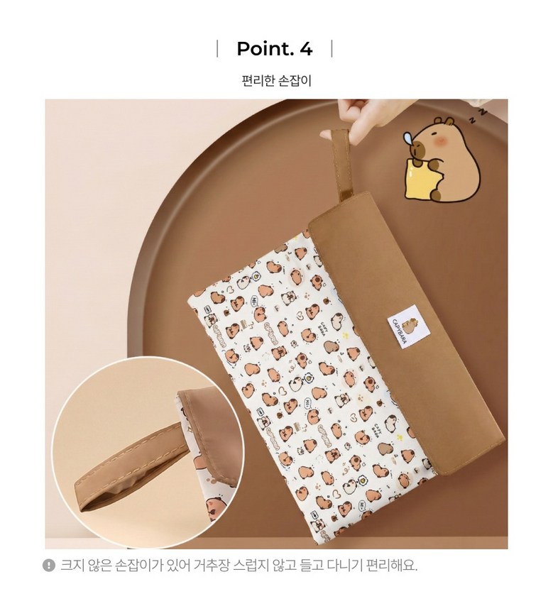 멜로하임 귀여운 캐릭터 북파우치 A4파일 보조가방 정리백 여행, 바라바라 카피바라, 1개