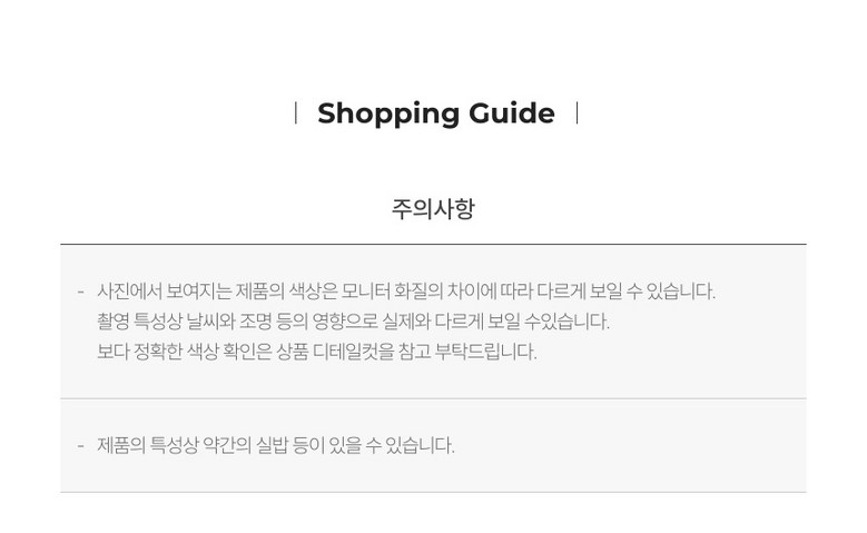 - ㆍ모니터 해상도의 차이로 인해 색상이나 이미지가 실제와 달라, 고객이 단순 변심으로 교환/반품을 무료로 요청하는 경우