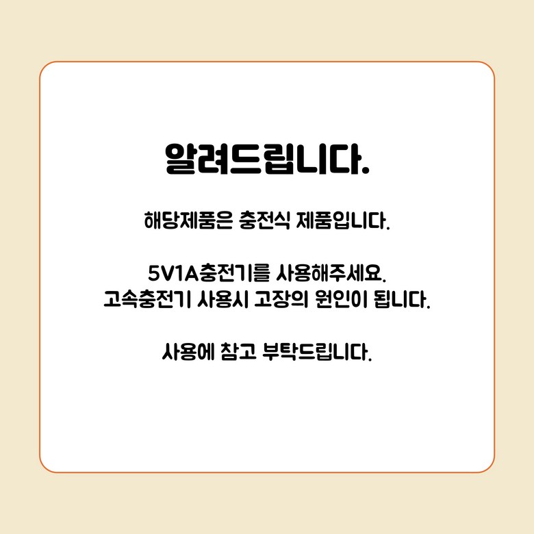 - 전원공급방식: USB 충전식