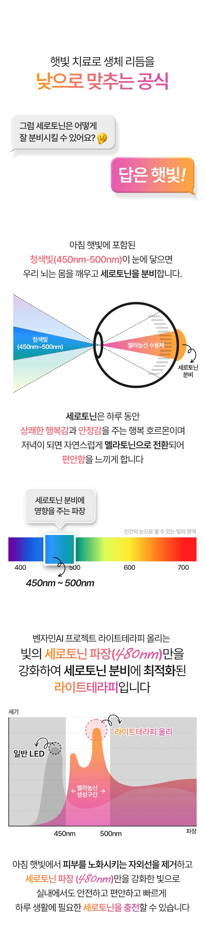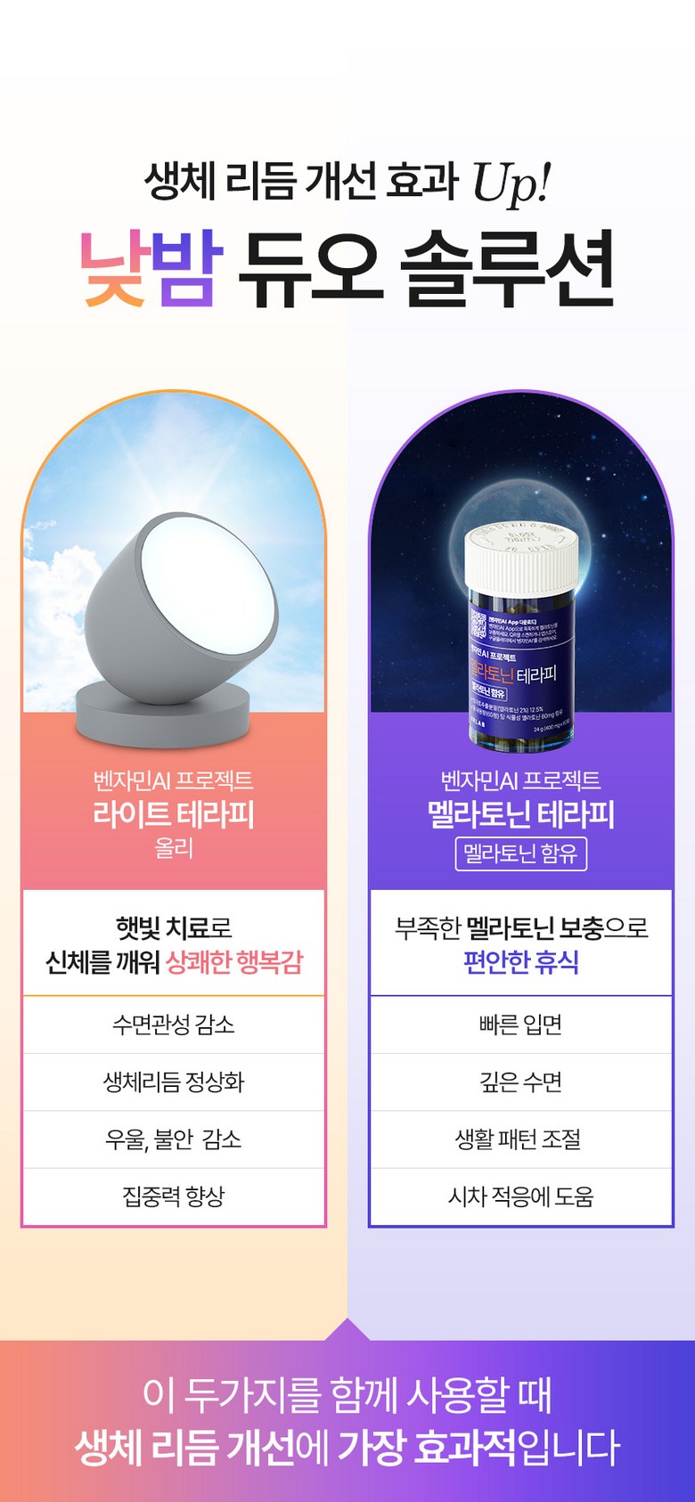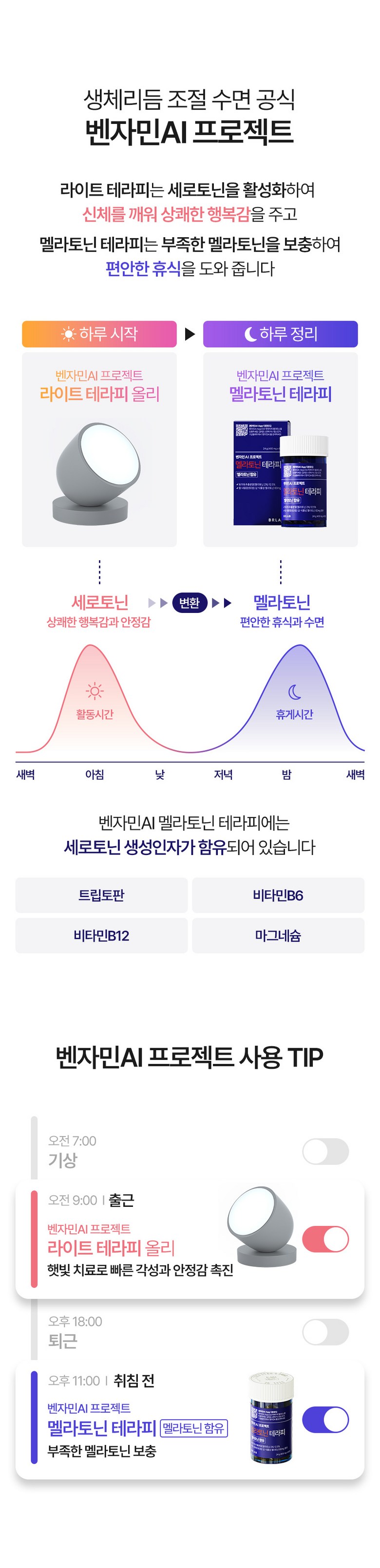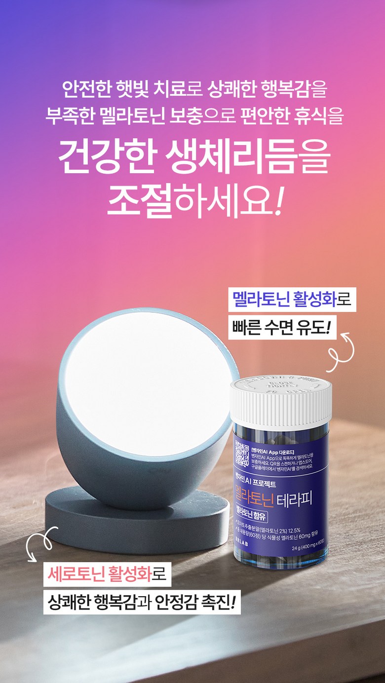벤자민AI 라이트테라피 햇빛 조명 광테라피 생체시계 세로토닌 각성 관리 + 멜라토닌 1BOX