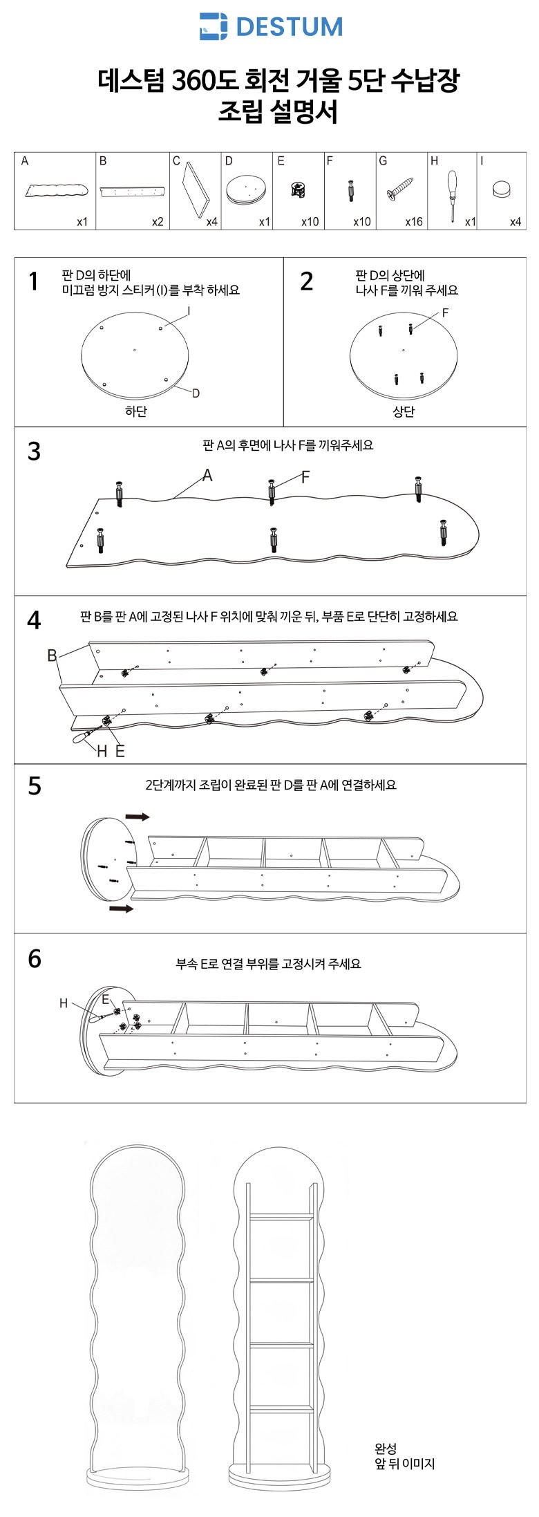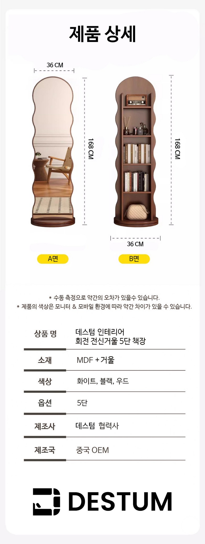 | 품명 및 모델명 | 데스텀 인테리어 회전 전신거울 5단 책장 | 인증/허가 사항 | 해당사항없음 |