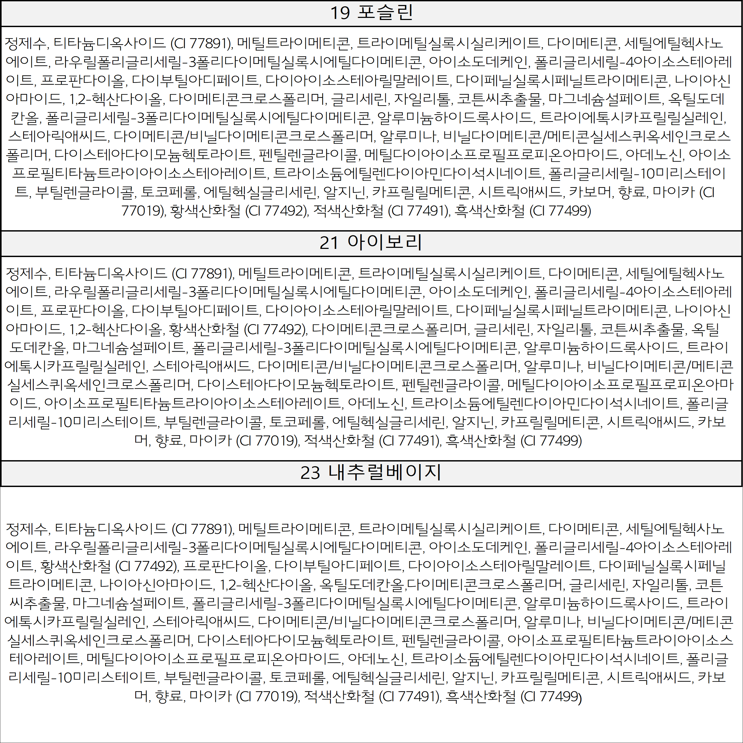 | 화장품제조업자, 화장품책임판매업자 및 맞춤형화장품판매업자 | 컨텐츠 참조 | 제조국 | 대한민국 |