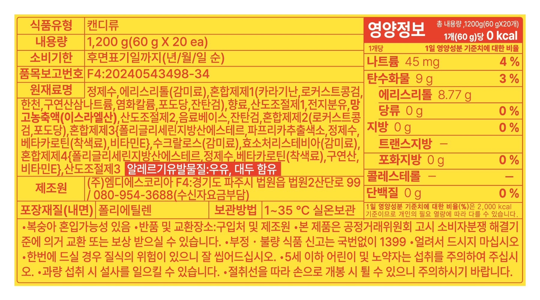 | 제품명 | 젤리블리 애플망고 제로슈가 | 식품의 유형 | 컨텐츠 참조 |